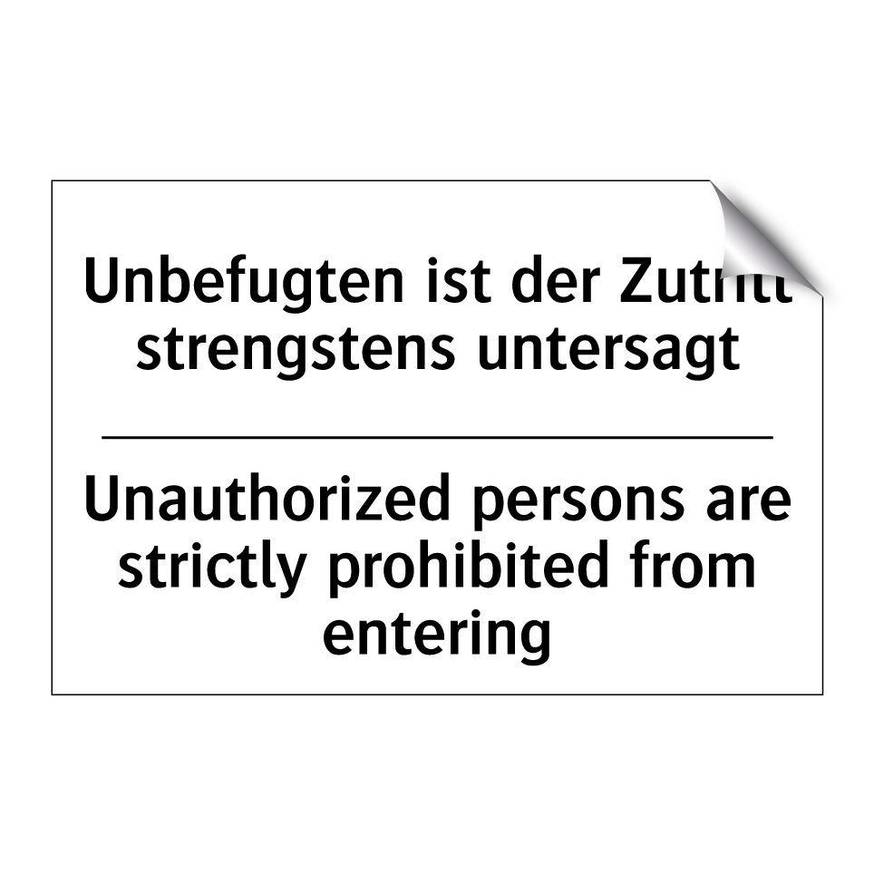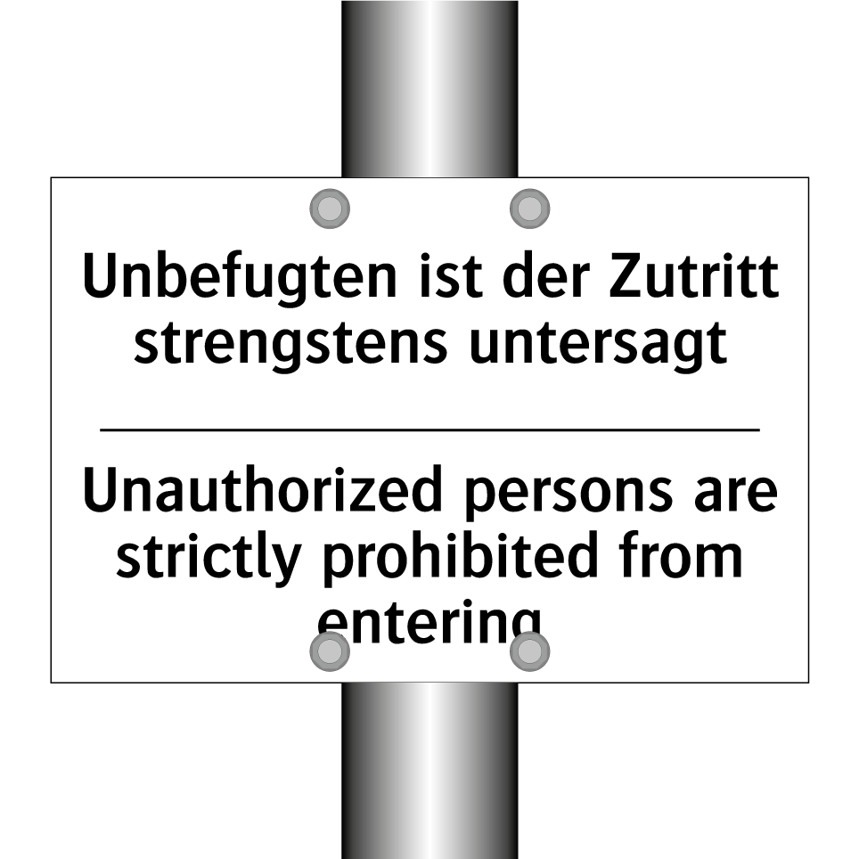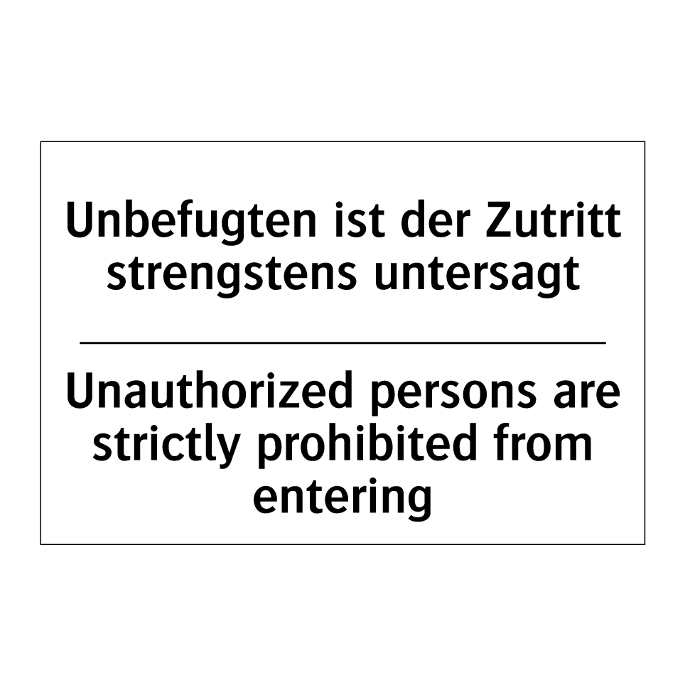 Zweisprachiges Verbotsschild mit deutschem Text Unbefugten ist der Zutritt strengstens untersagt und englischem Text Unauthorized persons are strictly prohibited from entering