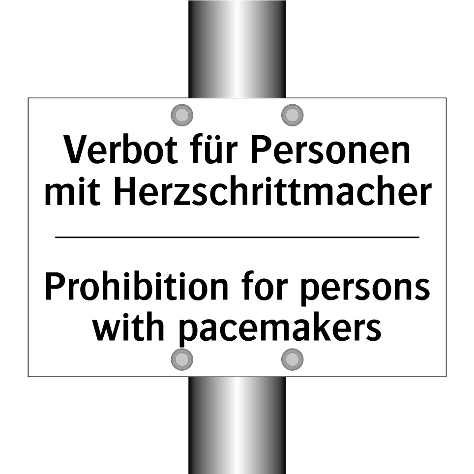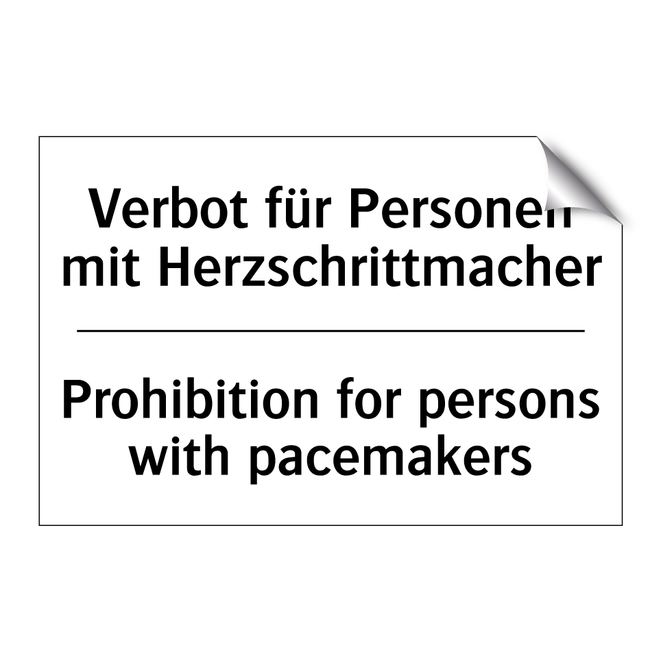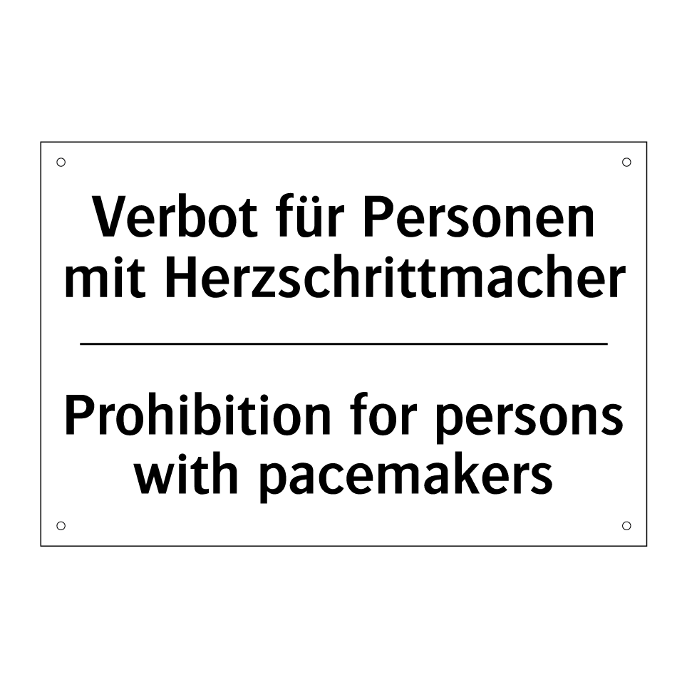 Zweisprachiges Verbotsschild mit deutschem Text Verbot für Personen mit Herzschrittmacher und englischem Text Prohibition for persons with pacemakers