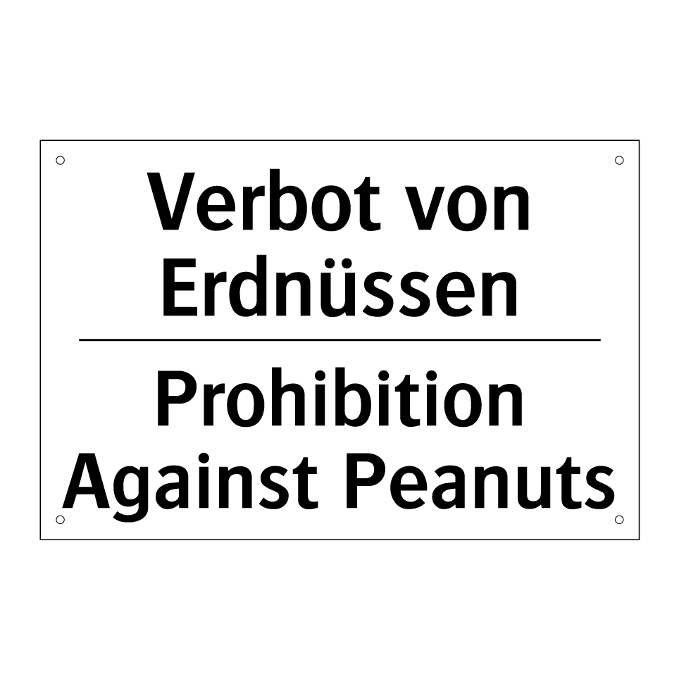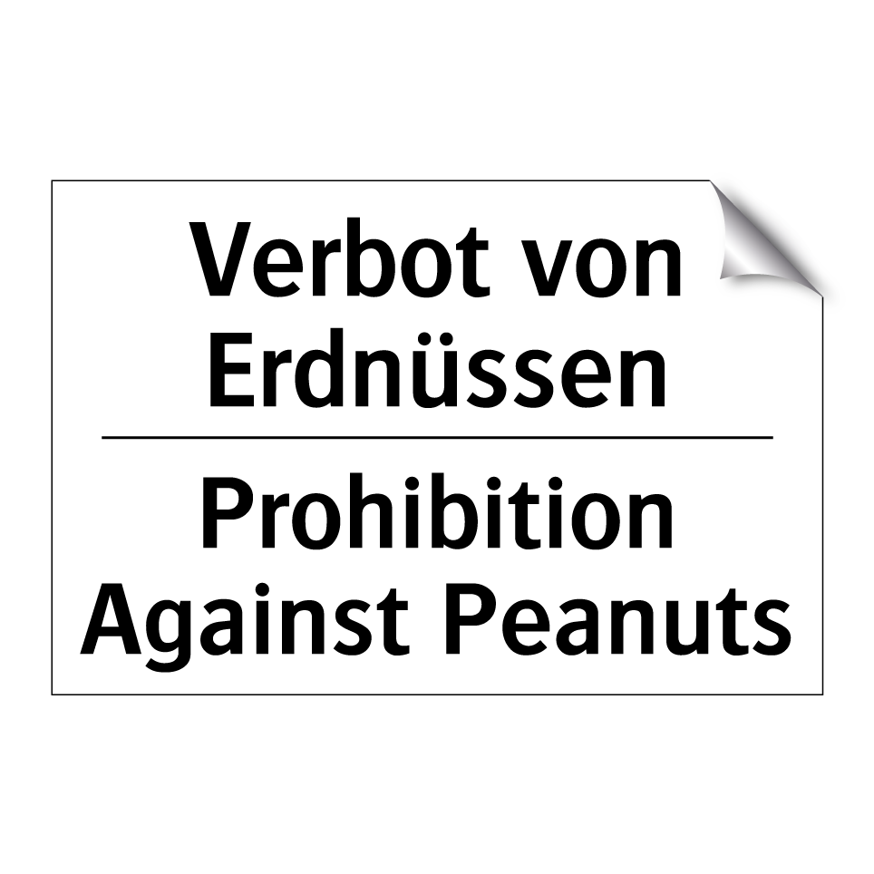 Zweisprachiges Verbotsschild mit deutschem Text Verbot von Erdnüssen und englischem Text Prohibition Against Peanuts