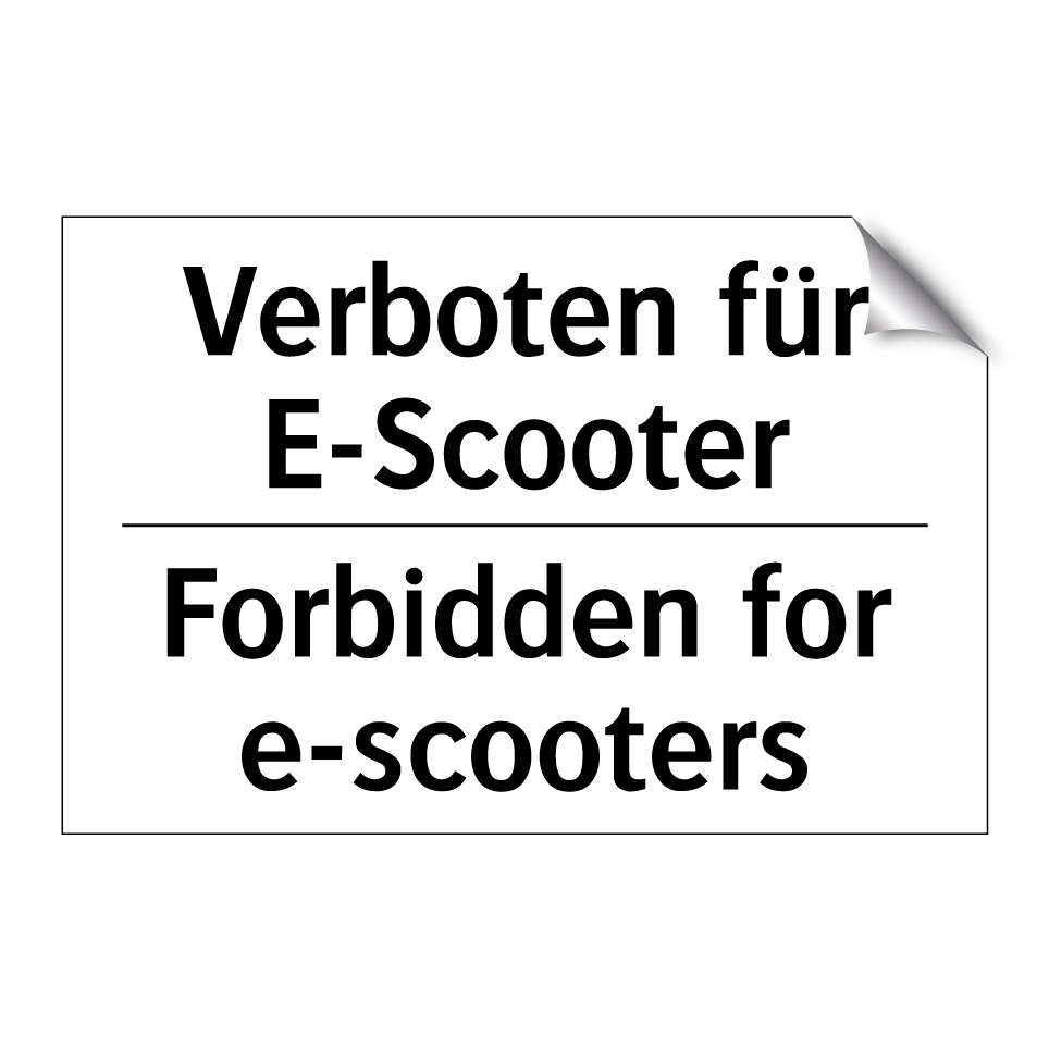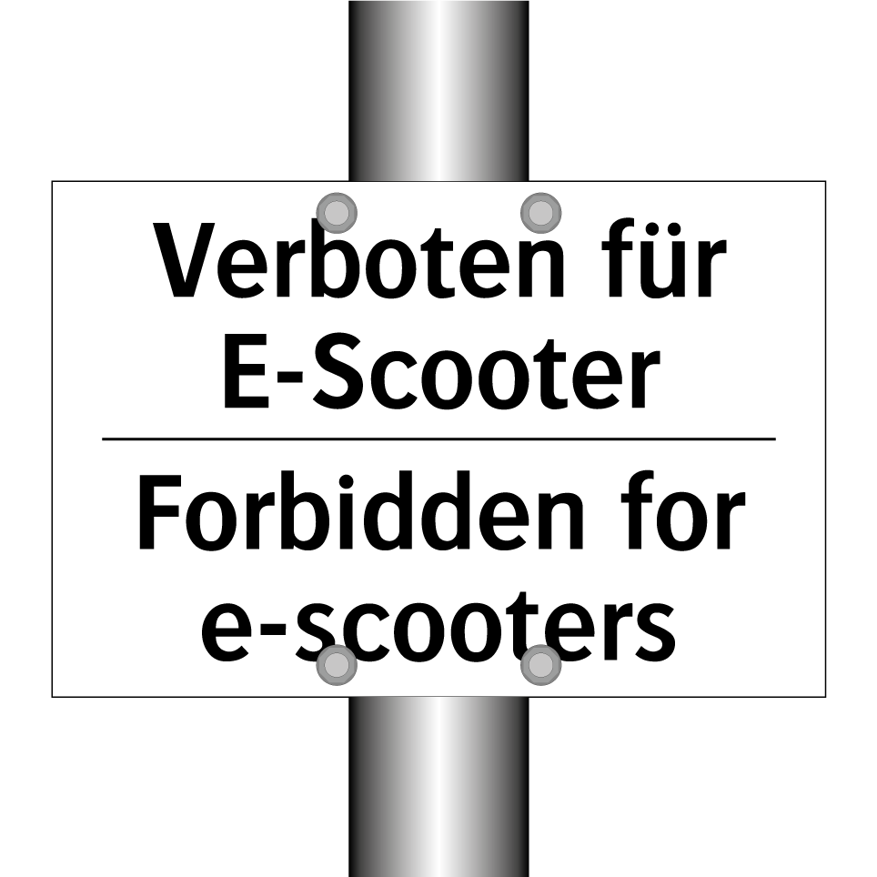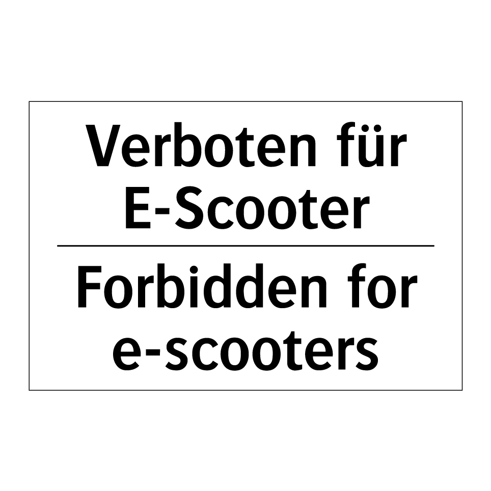 Zweisprachiges Verbotsschild mit deutschem Text Verboten für E-Scooter und englischem Text Forbidden for e-scooters
