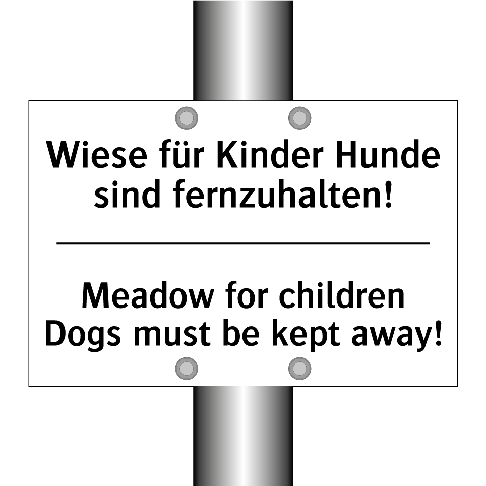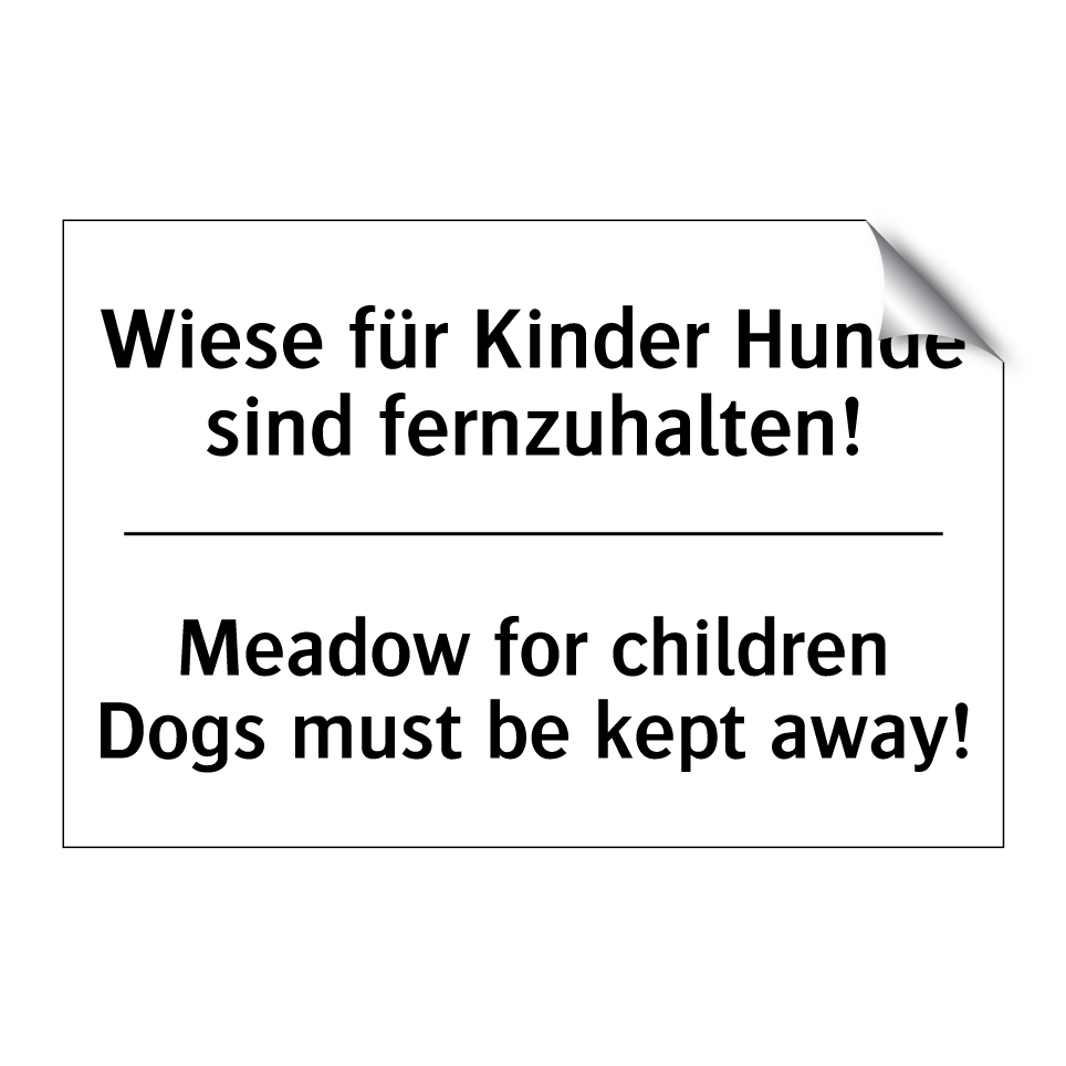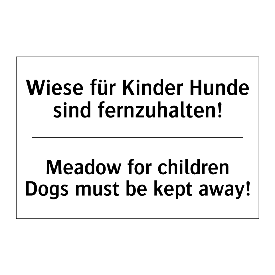 Zweisprachiges Verbotsschild mit deutschem Text Wiese für Kinder Hunde sind fernzuhalten! und englischem Text Meadow for children Dogs must be kept away!