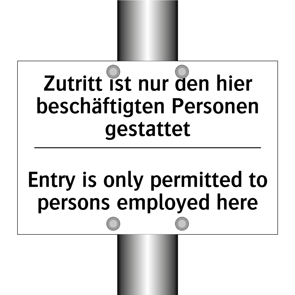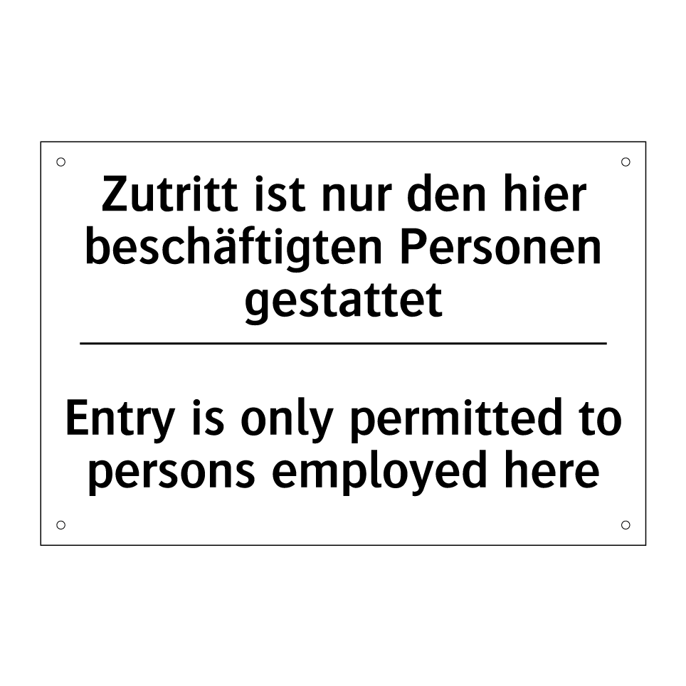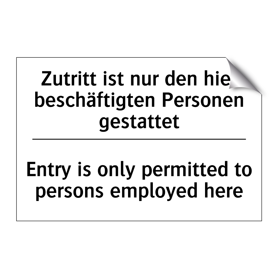 Zweisprachiges Verbotsschild mit deutschem Text Zutritt ist nur den hier beschäftigten Personen gestattet und englischem Text Entry is only permitted to persons employed here