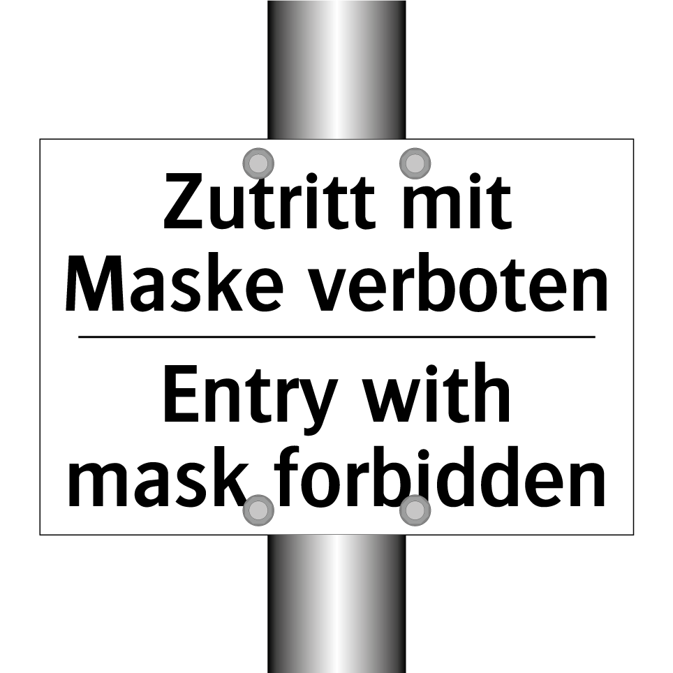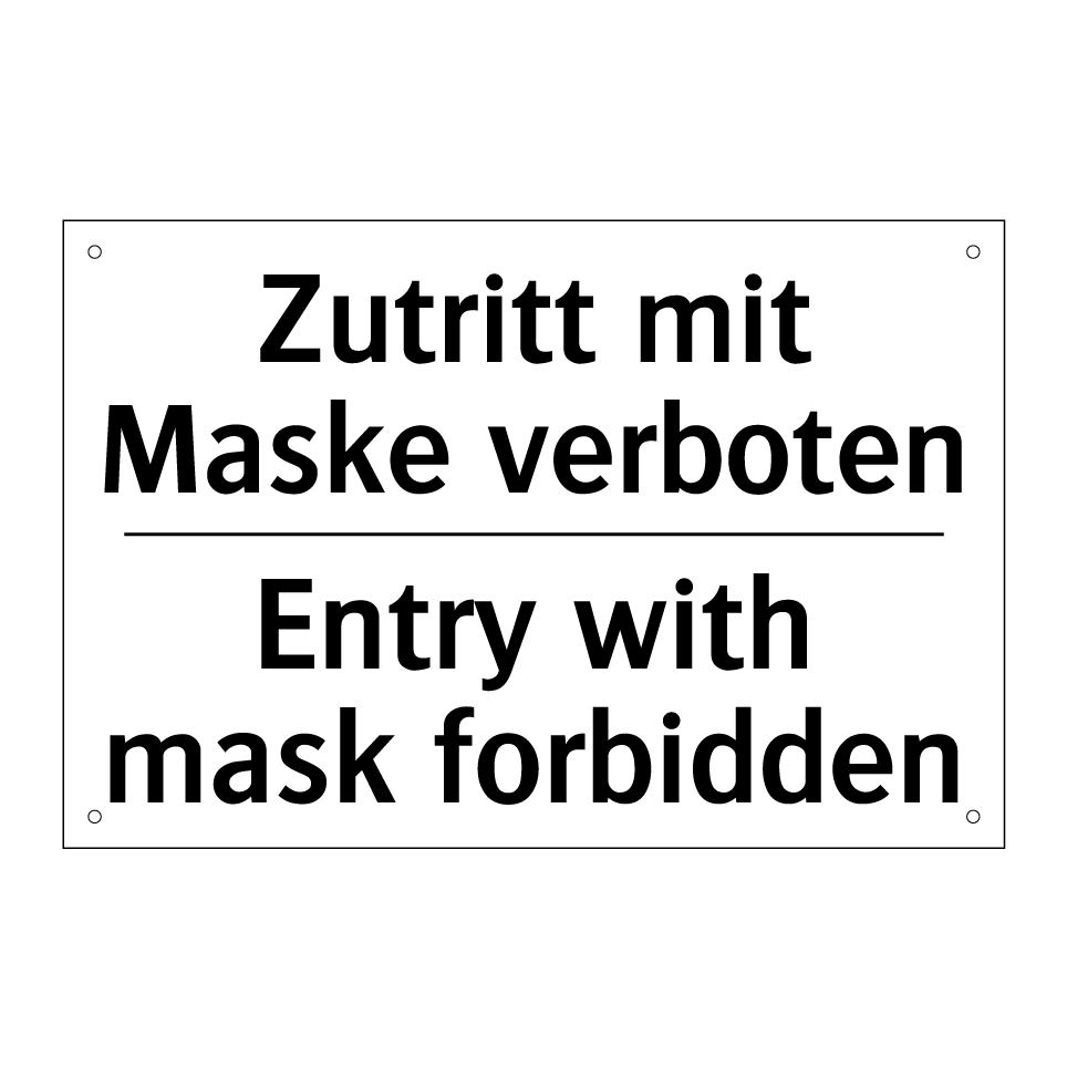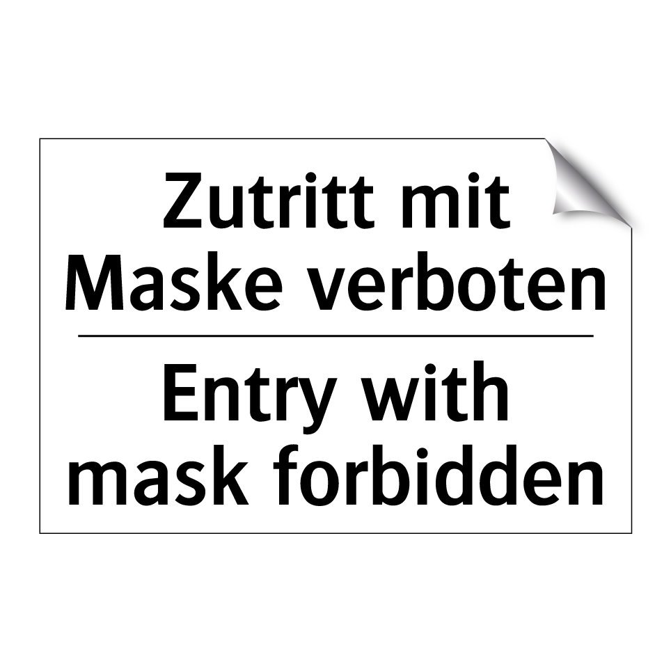 Diese zweisprachige Verbotsschild ist ideal für Orte, an denen der Zugang ohne Maske erforderlich ist. Mit klarer, prägnanter Botschaft in Deutsch und Englisch, sorgt sie für ein internationales Verständnis und minimiert Missverständnisse. Perfekt geeignet für Eingangsbereiche von Gebäuden, Büros oder Veranstaltungsorten, wo spezifische Sicherheits- oder Gesundheitsrichtlinien gelten. Die deutliche Beschriftung auf weißem Hintergrund zieht sofort die Aufmerksamkeit auf sich und stellt sicher, dass die Regeln klar kommuniziert werden. Diese Verbotsschilder sind ein unverzichtbares Element, um die Einhaltung von Vorschriften zu gewährleisten und die Sicherheit aller zu fördern.