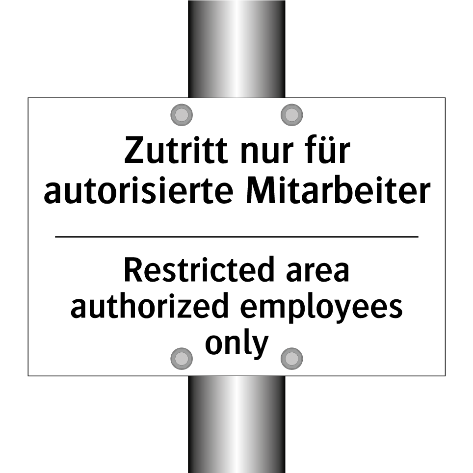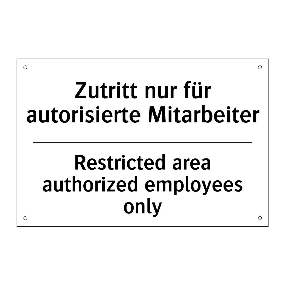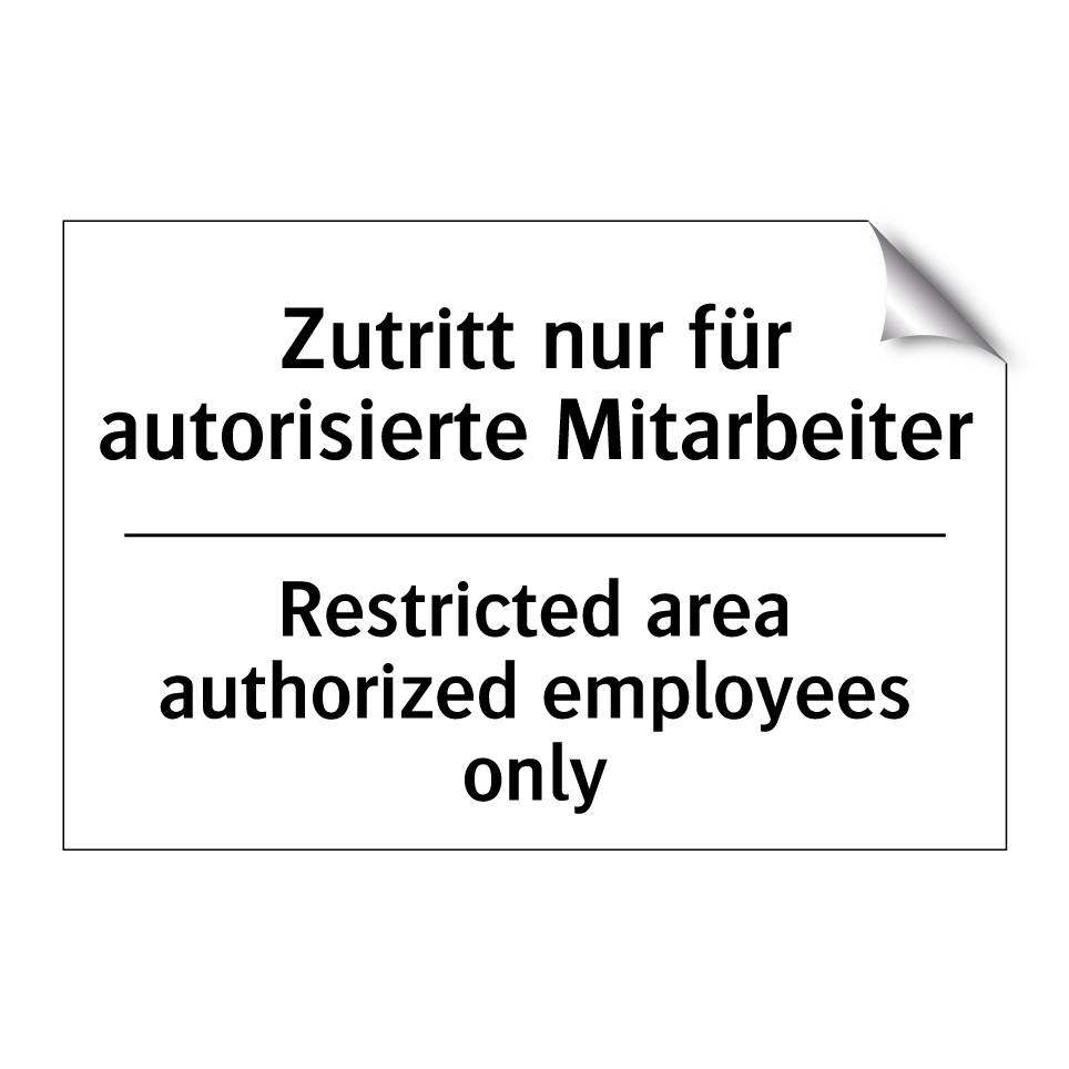 Zweisprachiges Verbotsschild mit deutschem Text Zutritt nur für autorisierte Mitarbeiter und englischem Text Restricted area authorized employees only