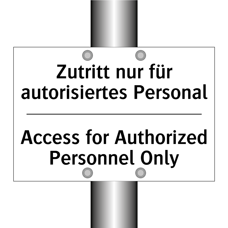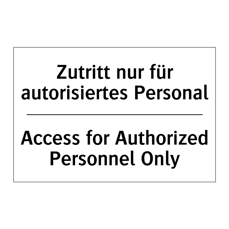 Zweisprachiges Verbotsschild mit deutschem Text Zutritt nur für autorisiertes Personal und englischem Text Access for Authorized Personnel Only