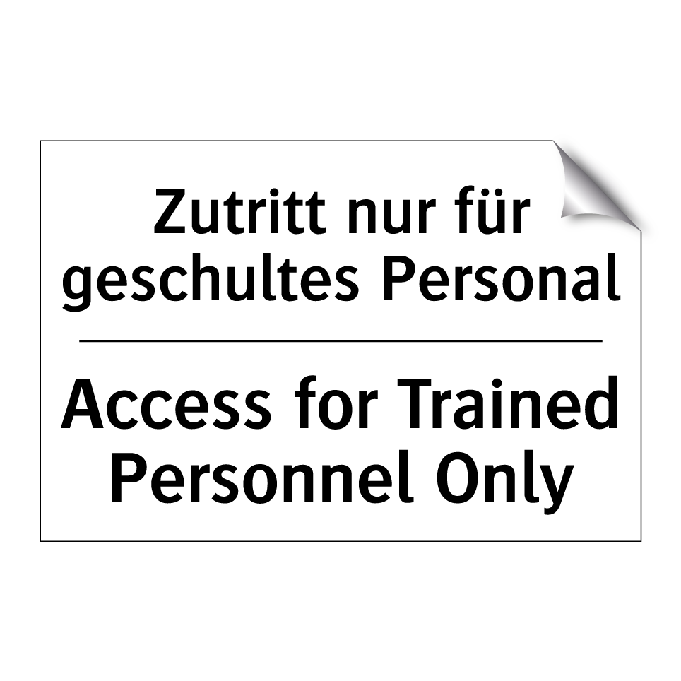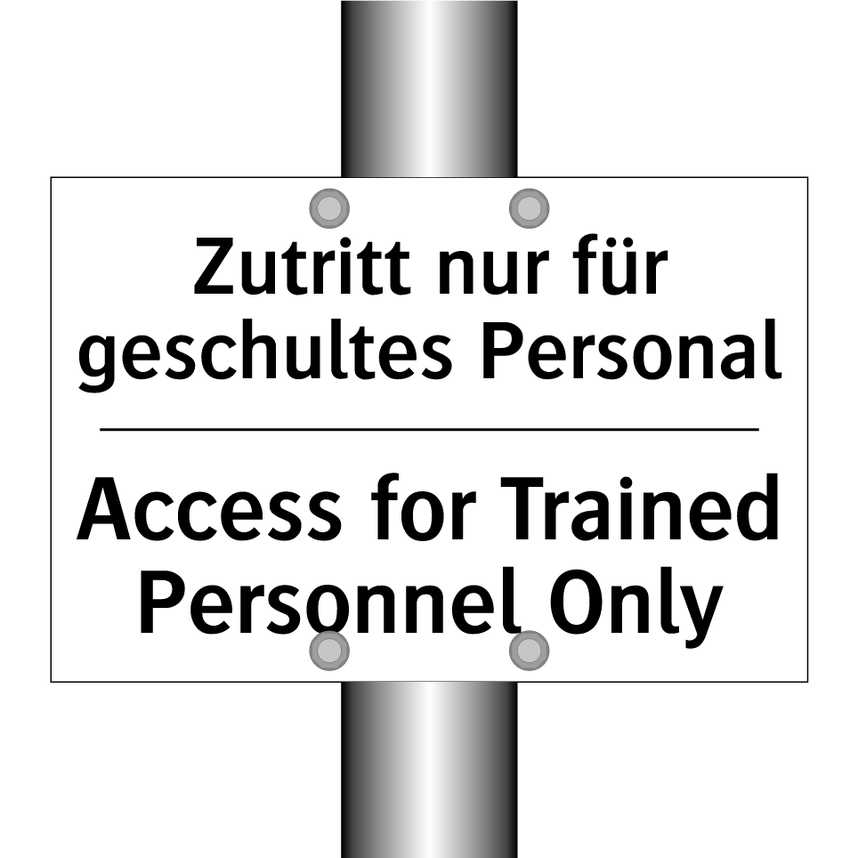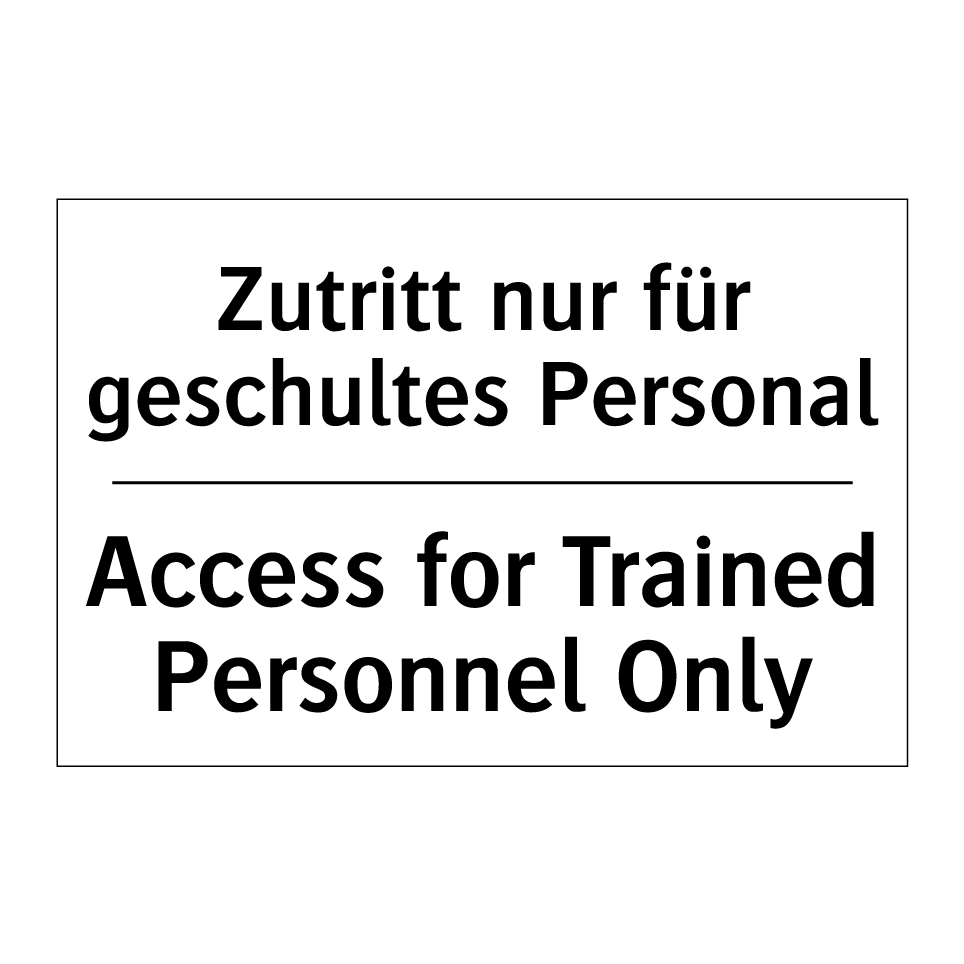 Zweisprachiges Verbotsschild mit deutschem Text Zutritt nur für geschultes Personal und englischem Text Access for Trained Personnel Only
