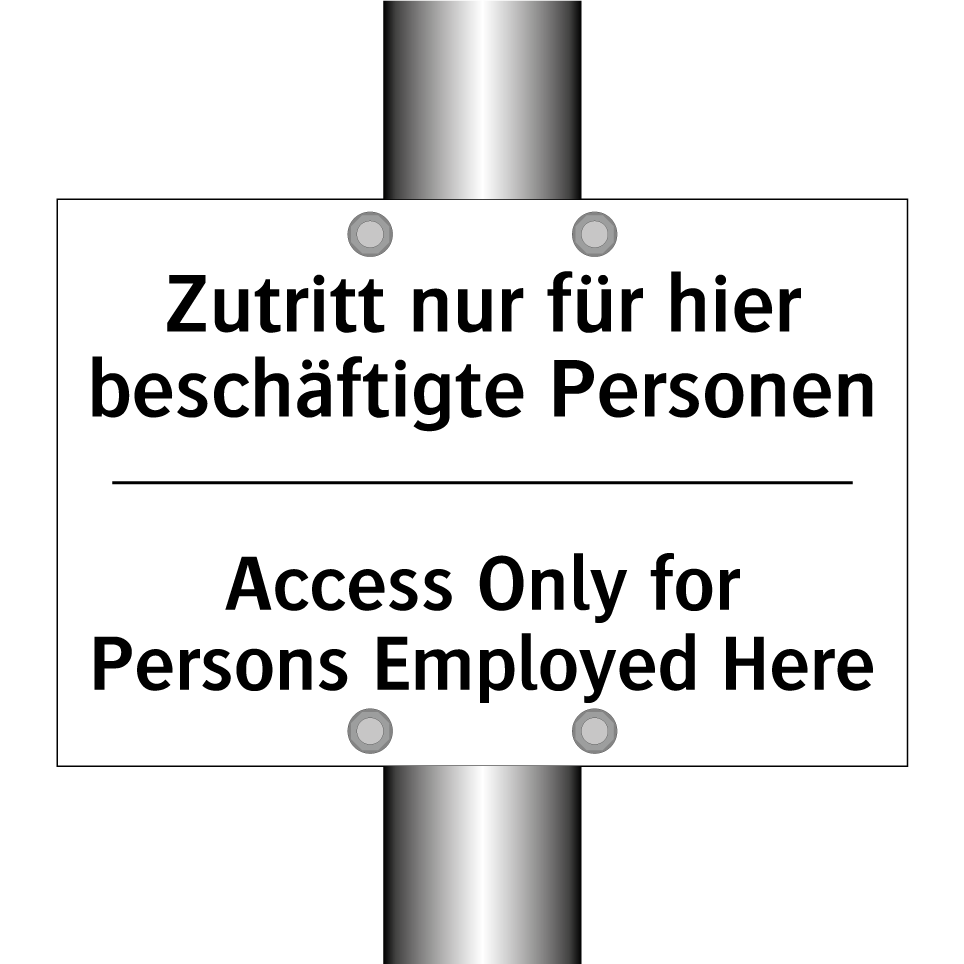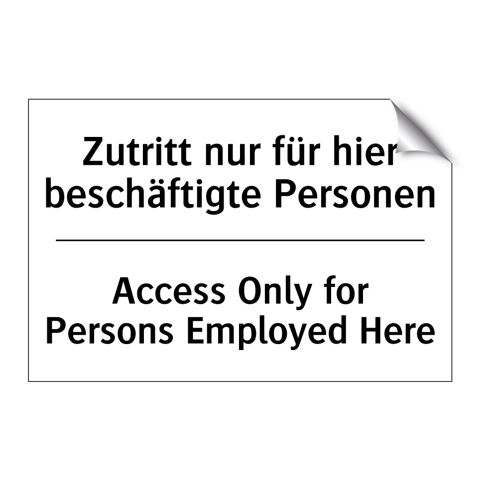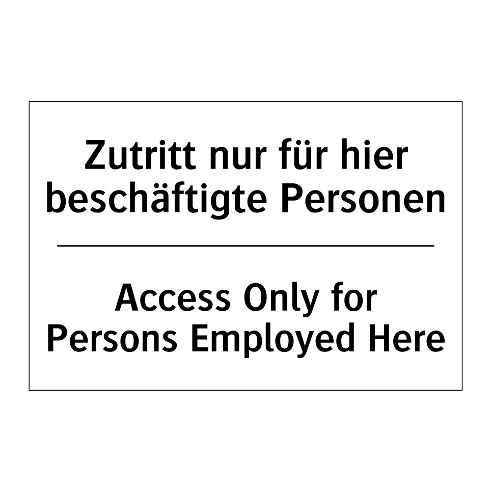 Zweisprachiges Verbotsschild mit deutschem Text Zutritt nur für hier beschäftigte Personen und englischem Text Access Only for Persons Employed Here