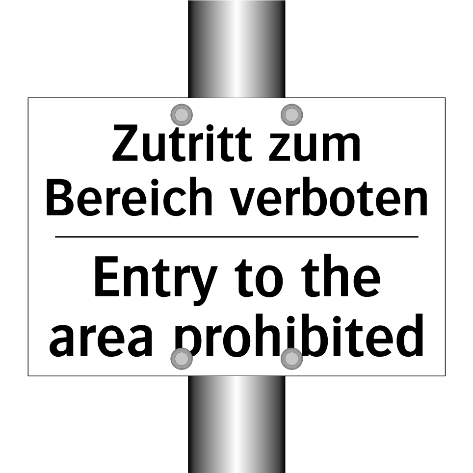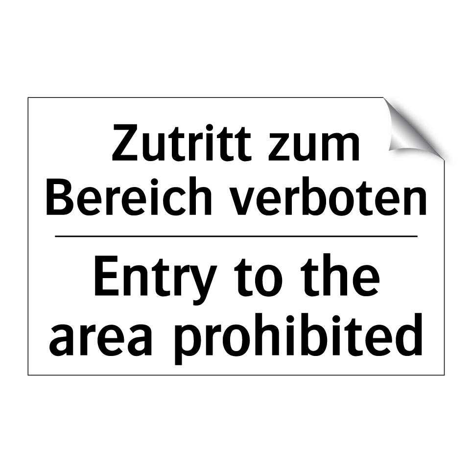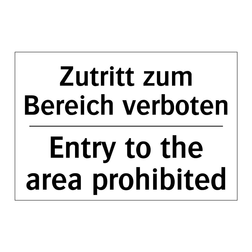 Zweisprachiges Verbotsschild mit deutschem Text Zutritt zum Bereich verboten und englischem Text Entry to the area prohibited