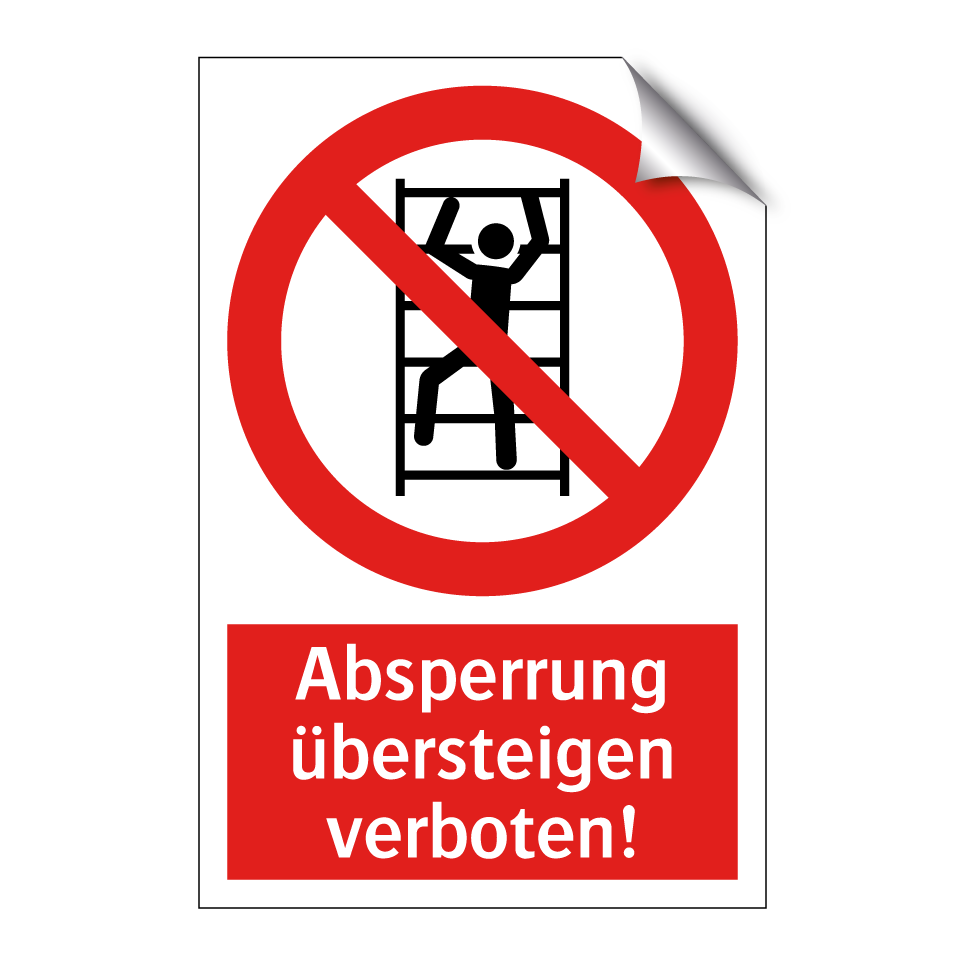 Verbotsschild mit dem Text Absperrung übersteigen verboten!