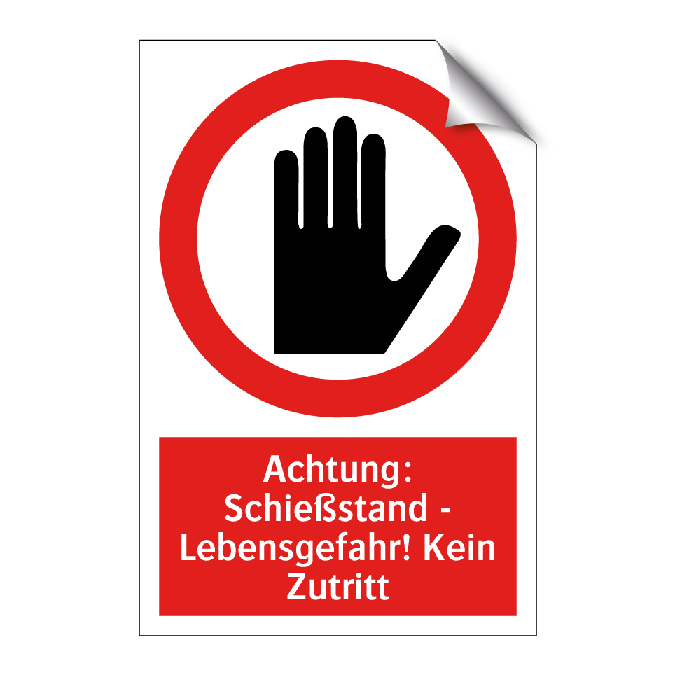 Verbotsschild mit dem Text Achtung: Schießstand - Lebensgefahr! Kein Zutritt