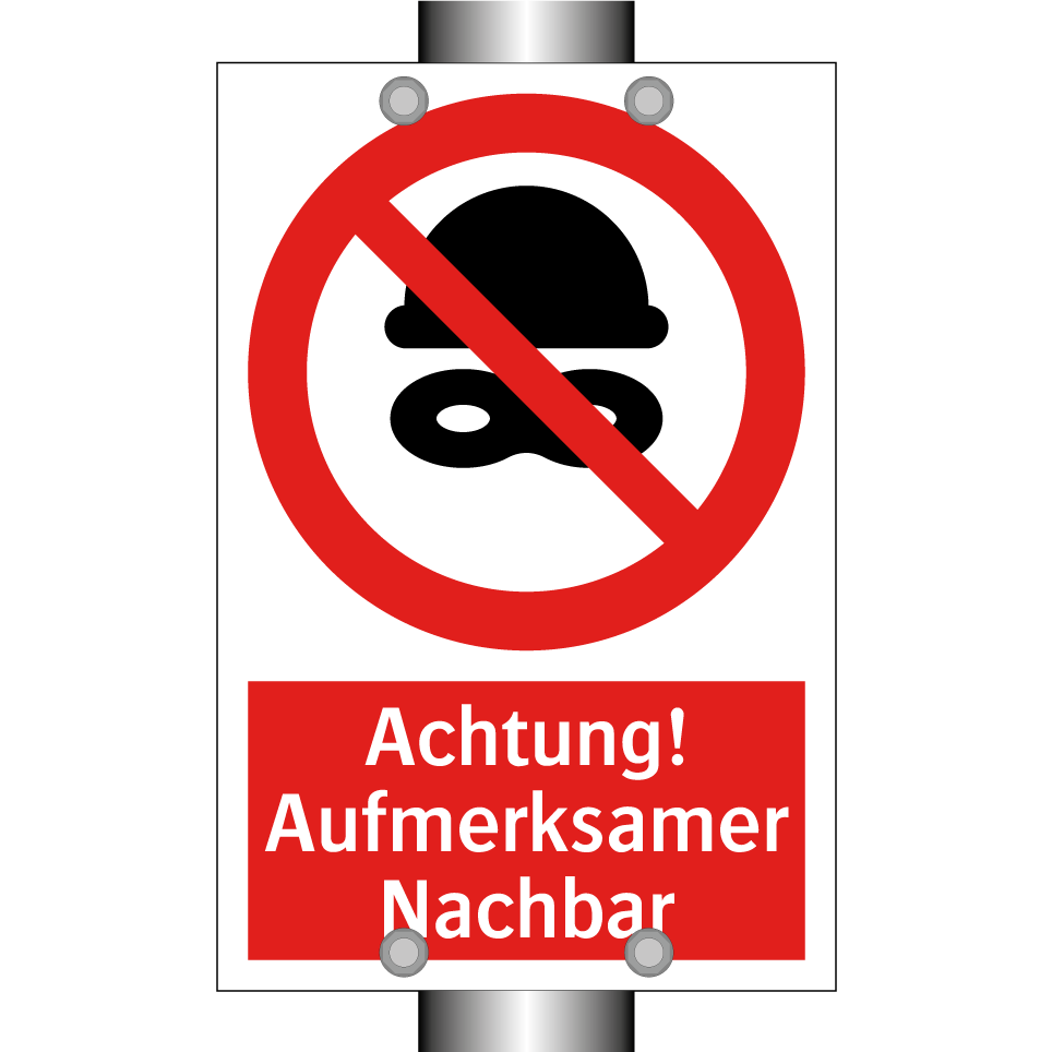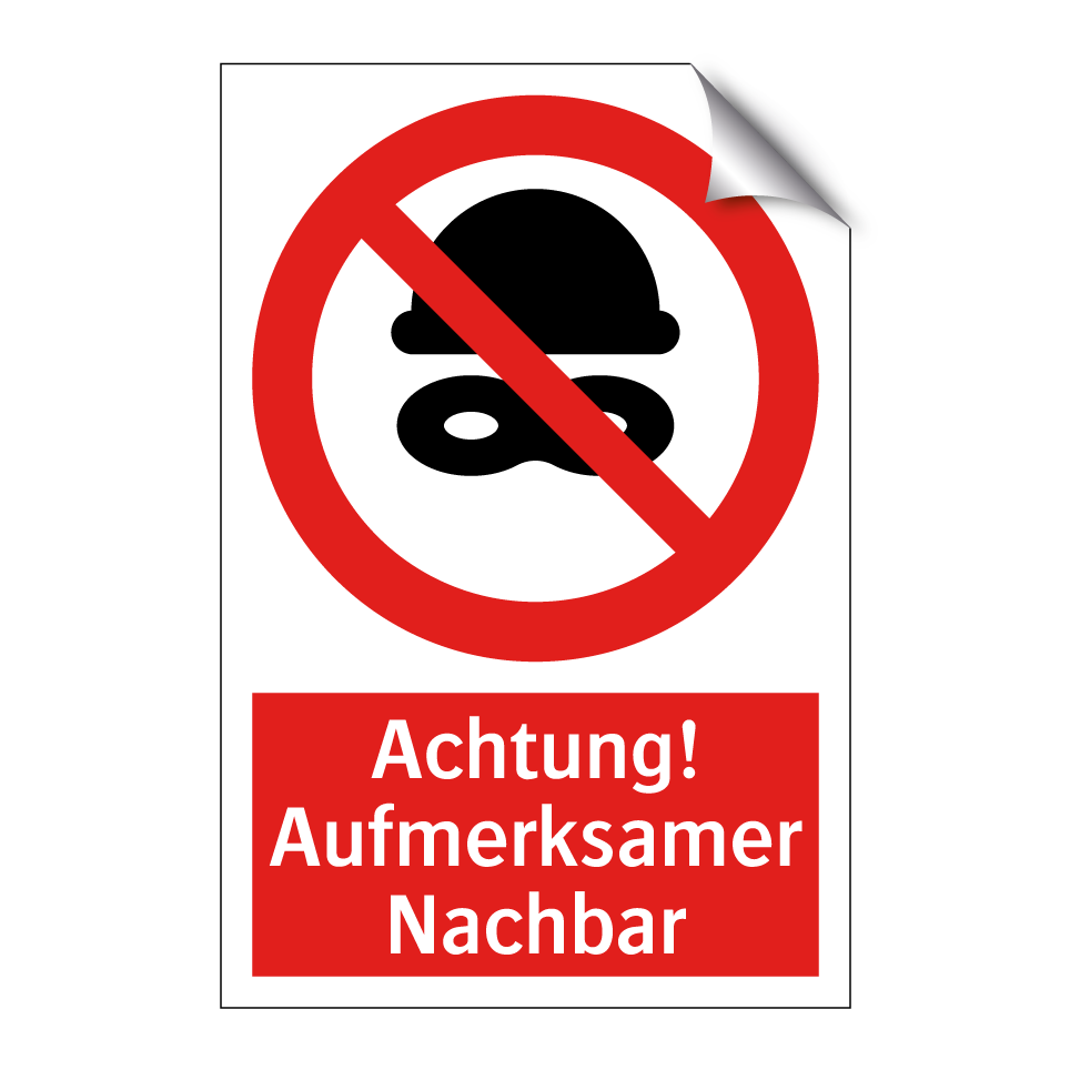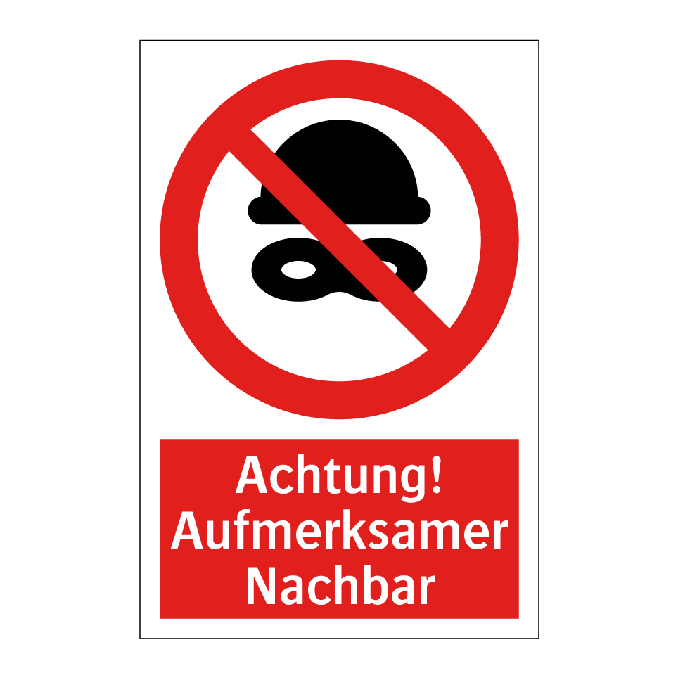 Verbotsschild mit dem Text Achtung! Aufmerksamer Nachbar
