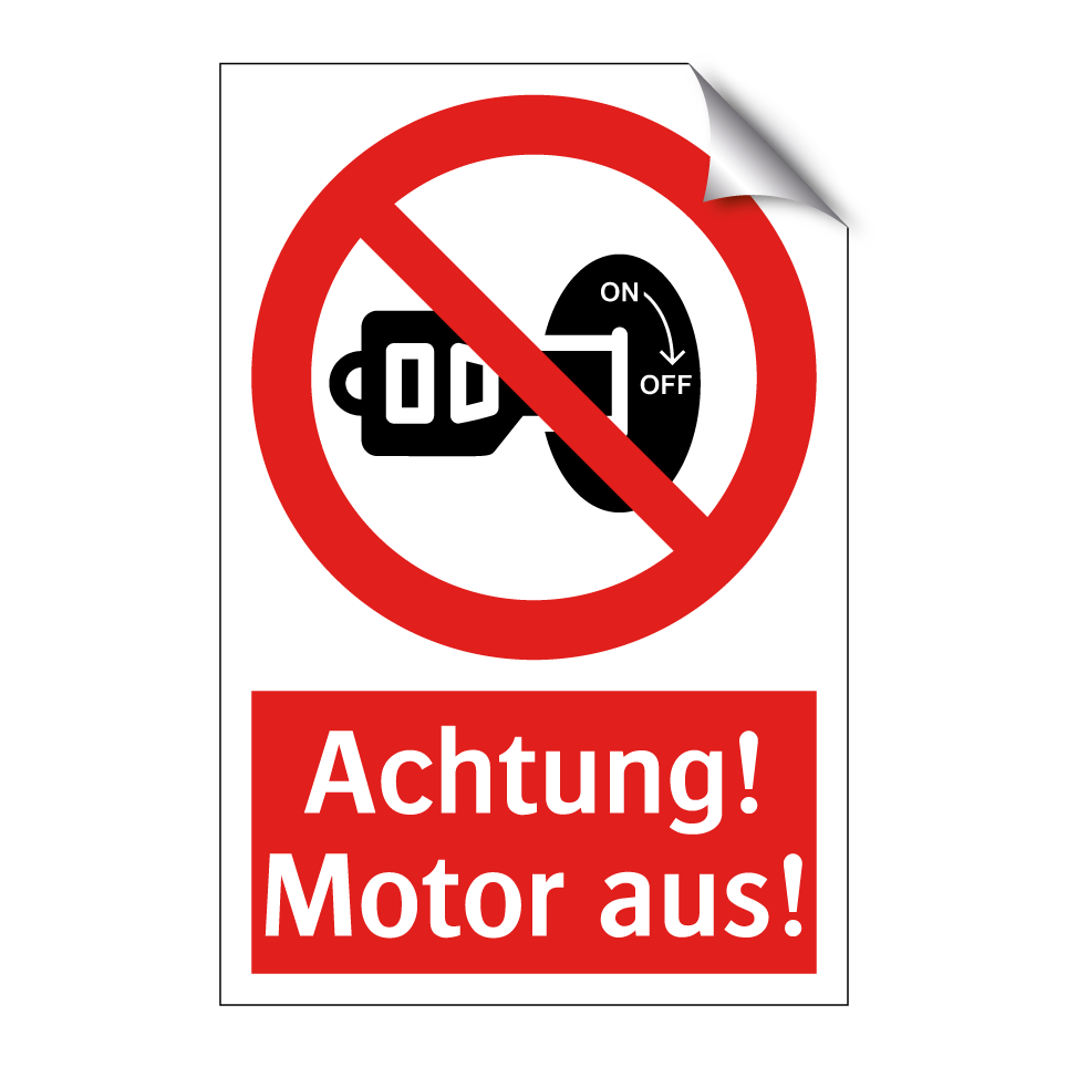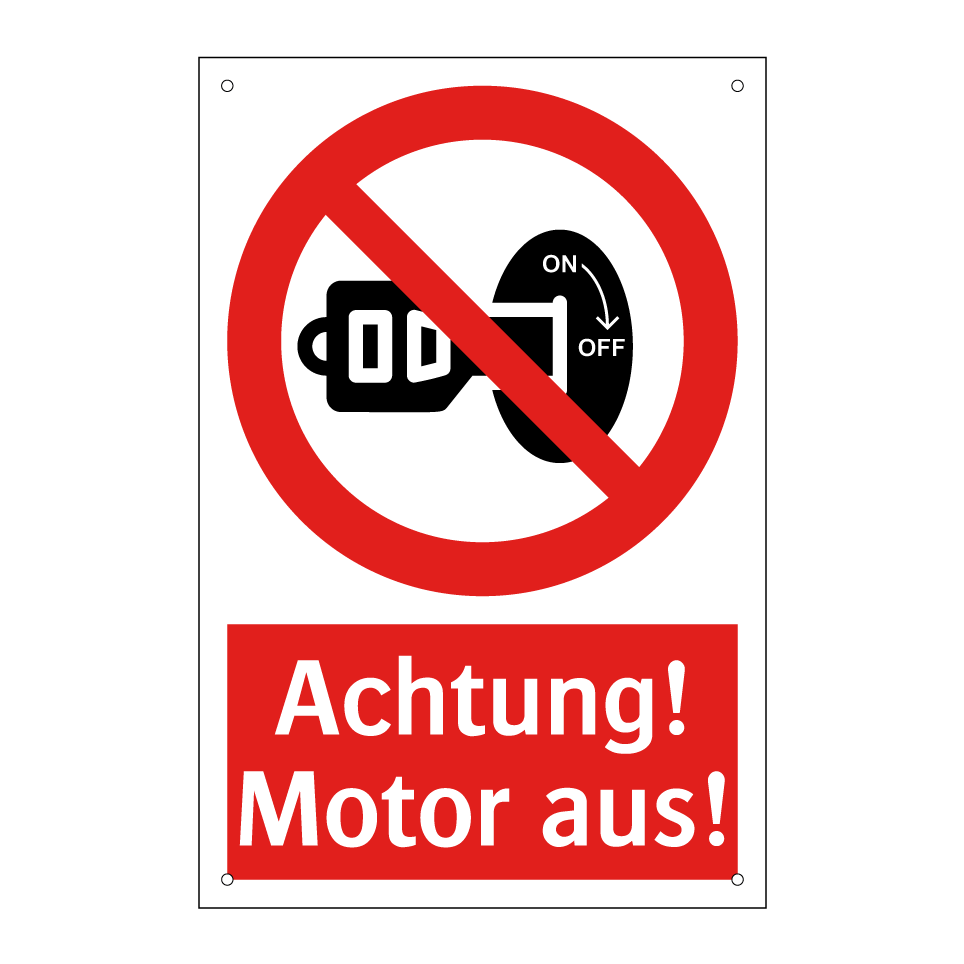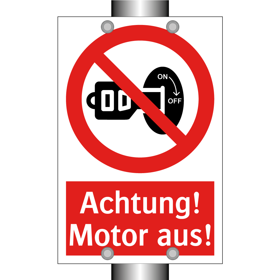 Verbotsschild mit dem Text Achtung! Motor aus!
