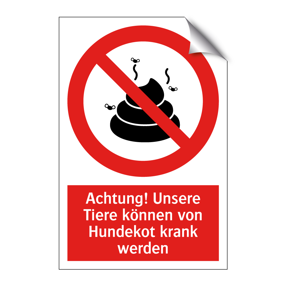 Verbotsschild mit dem Text Achtung! Unsere Tiere können von Hundekot krank werden