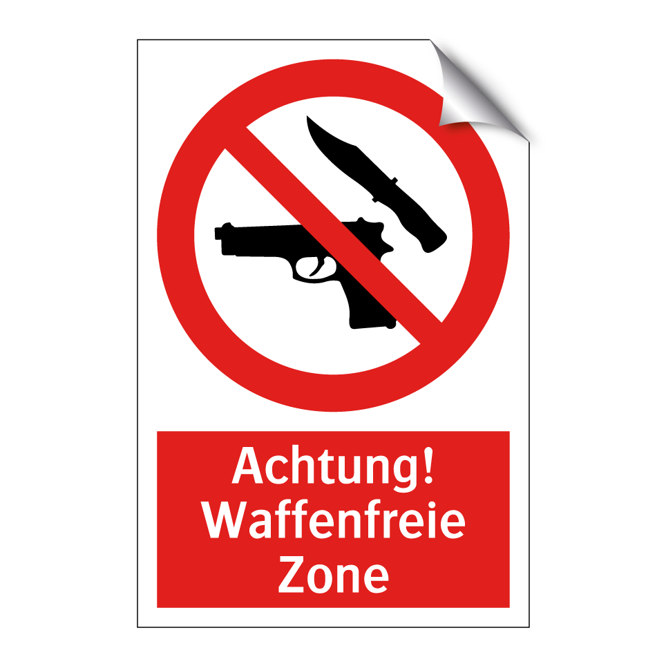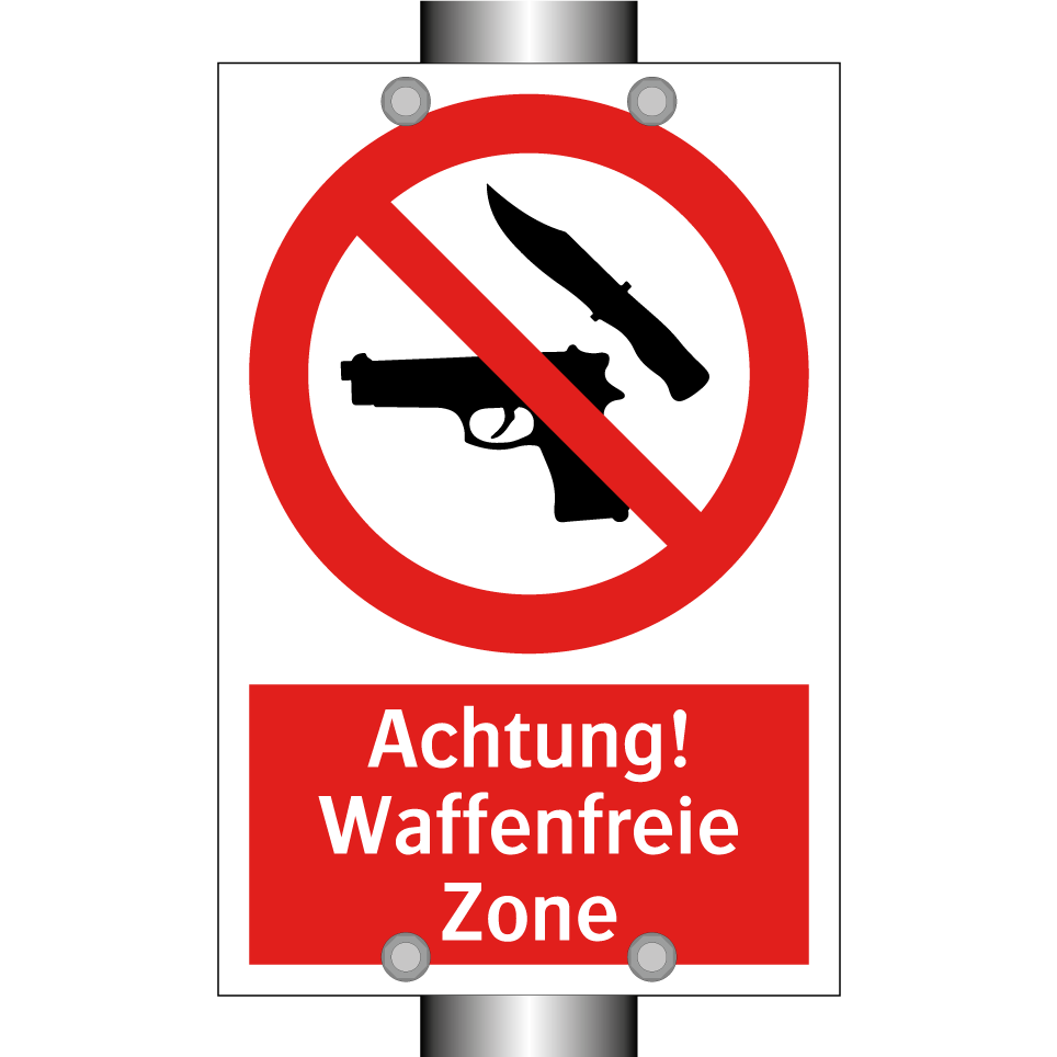 Verbotsschild mit dem Text Achtung! Waffenfreie Zone