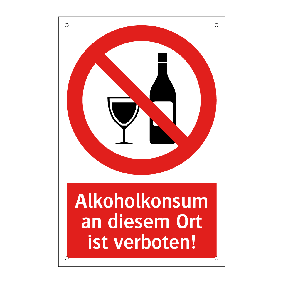 Verbotsschild mit dem Text Alkoholkonsum an diesem Ort ist verboten!