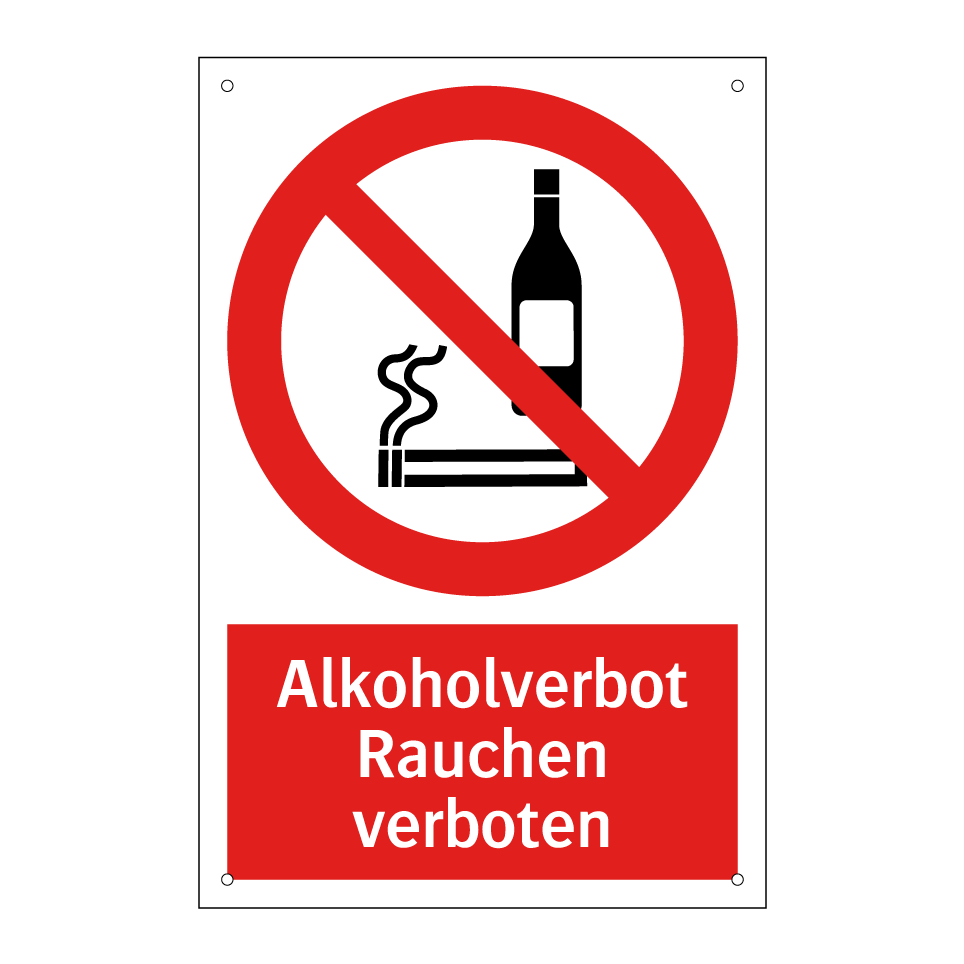 Verbotsschild mit dem Text Alkoholverbot Rauchen verboten