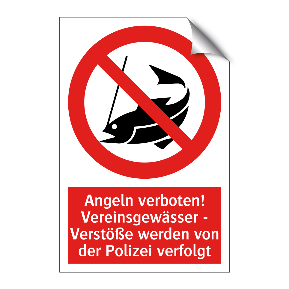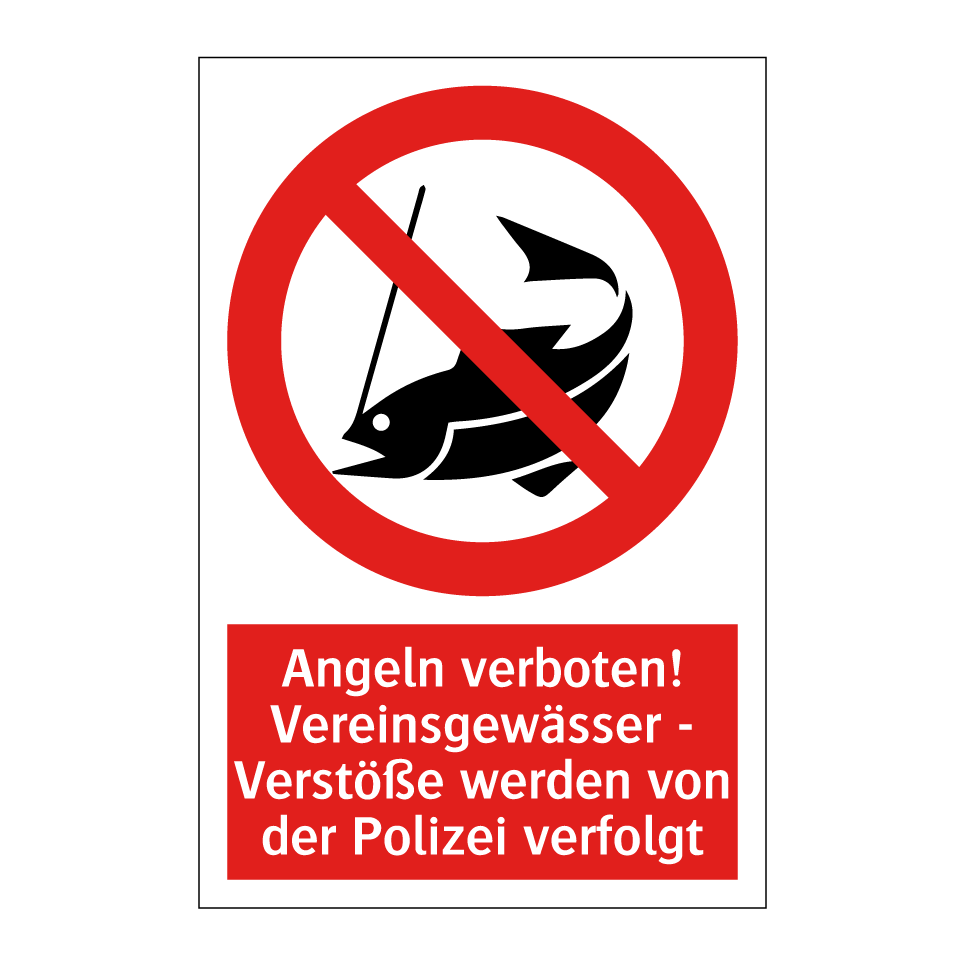 Verbotsschild mit dem Text Angeln verboten! Vereinsgewässer - Verstöße werden von der Polizei verfolgt