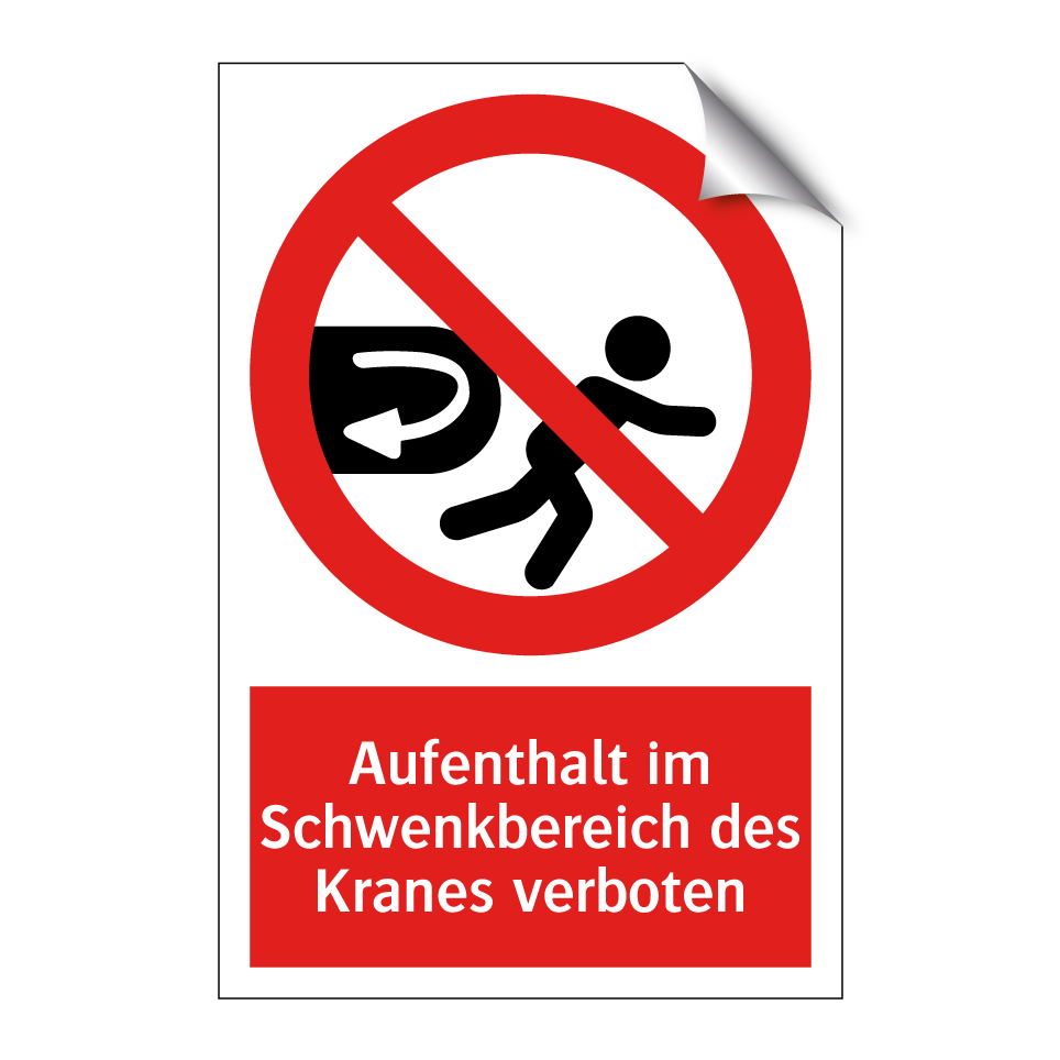 Verbotsschild mit dem Text Aufenthalt im Schwenkbereich des Kranes verboten