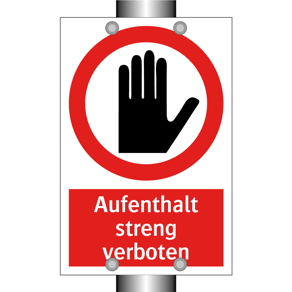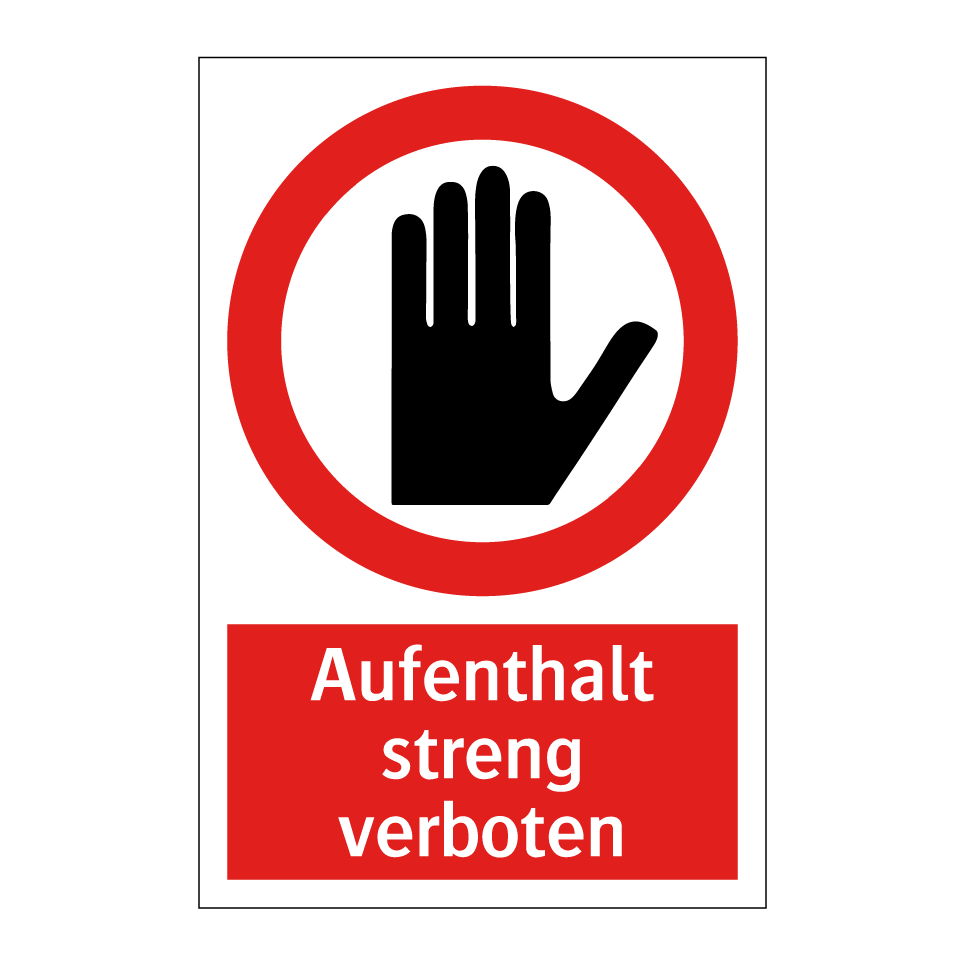 Verbotsschild mit dem Text Aufenthalt streng verboten
