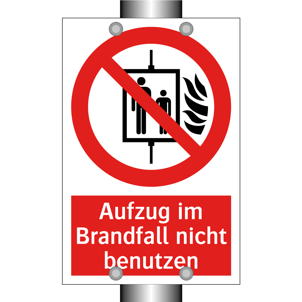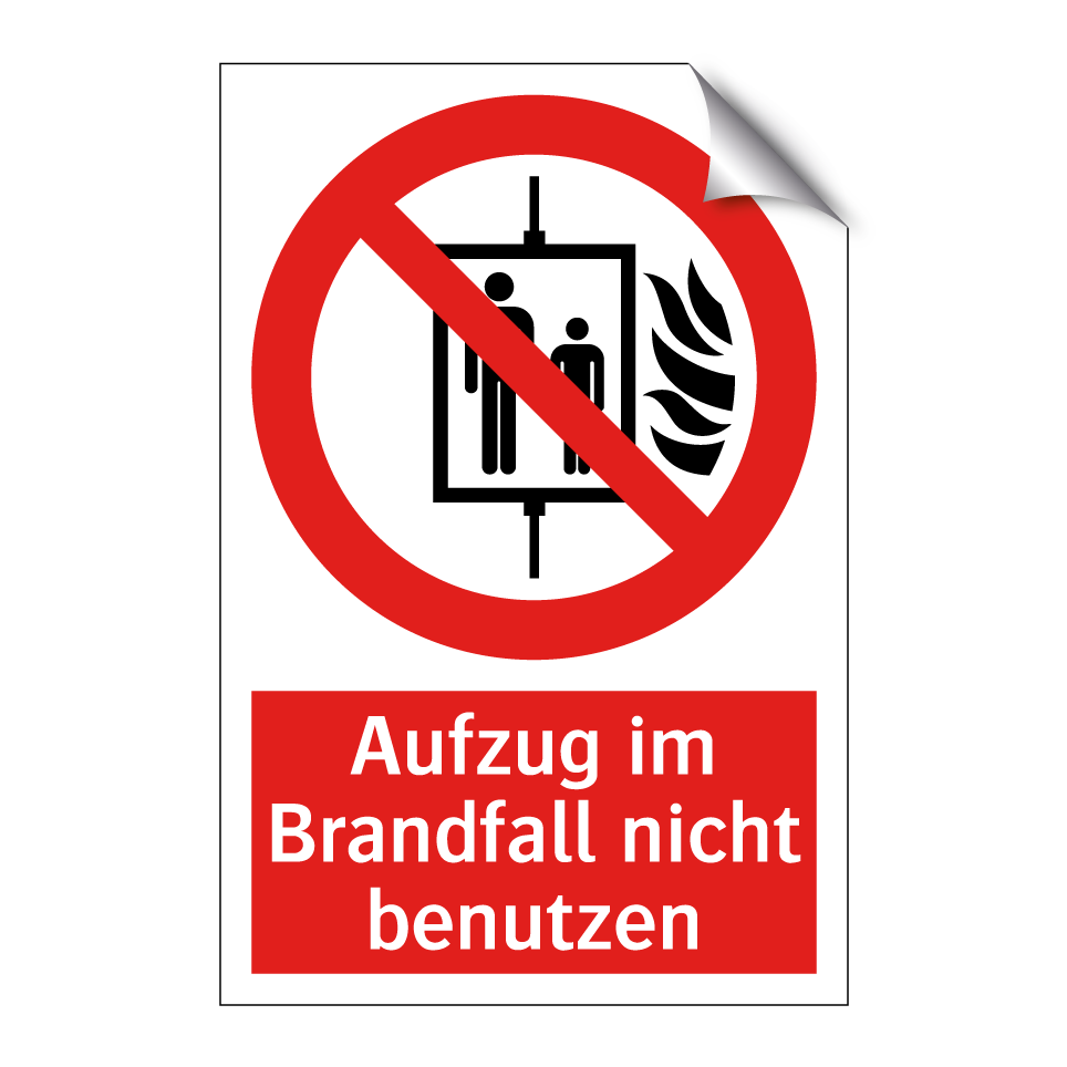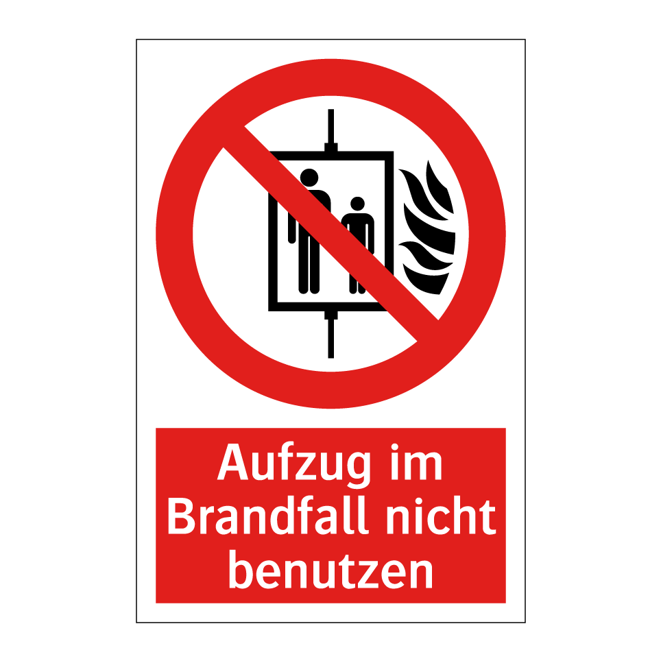 Verbotsschild mit dem Text Aufzug im Brandfall nicht benutzen