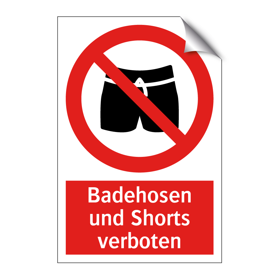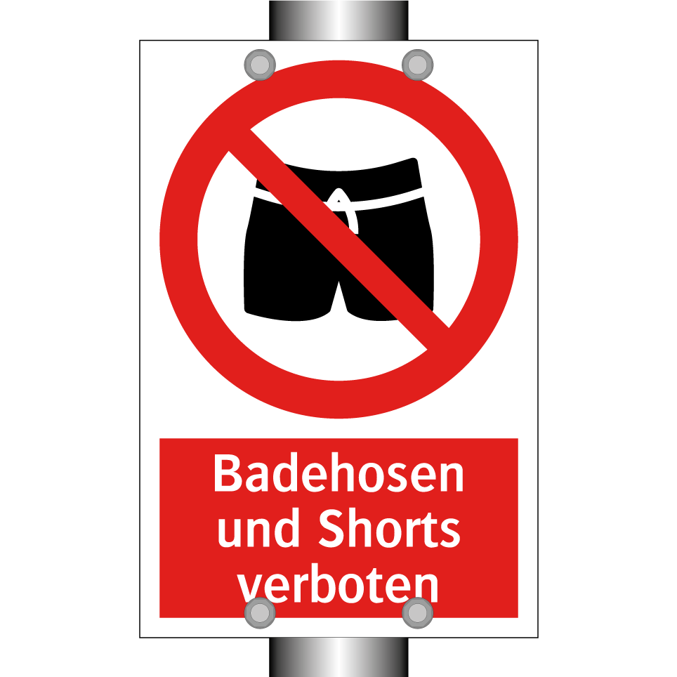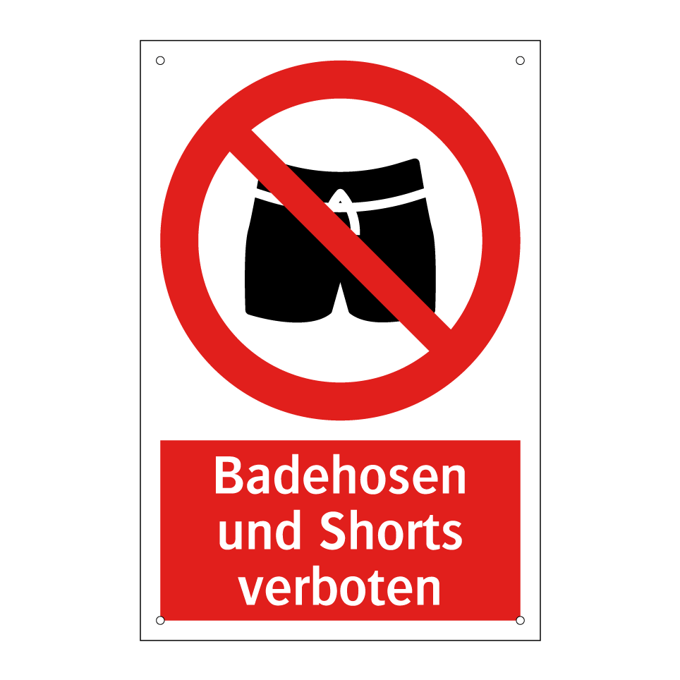 Verbotsschild mit dem Text Badehosen und Shorts verboten