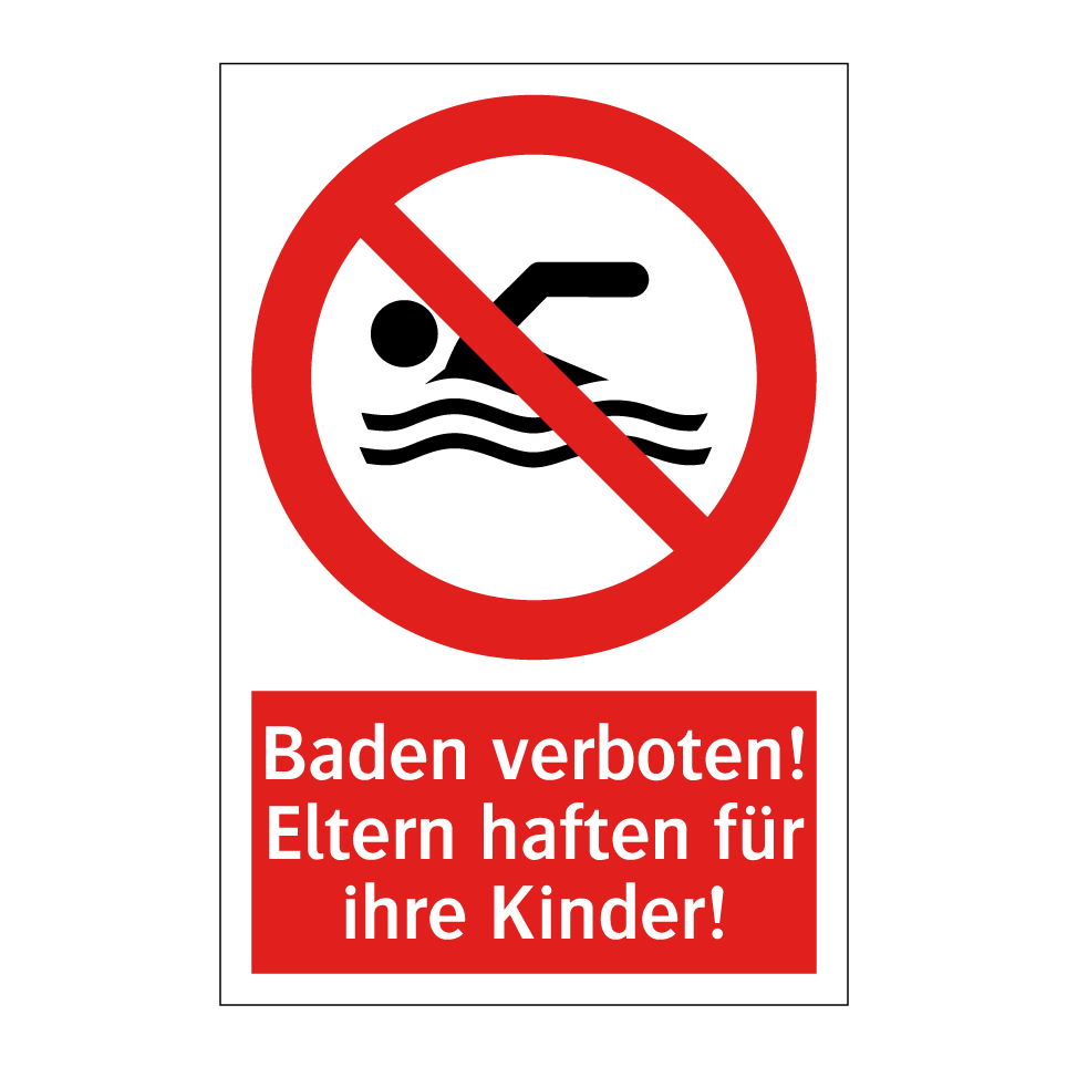Verbotsschild mit dem Text Baden verboten! Eltern haften für ihre Kinder!