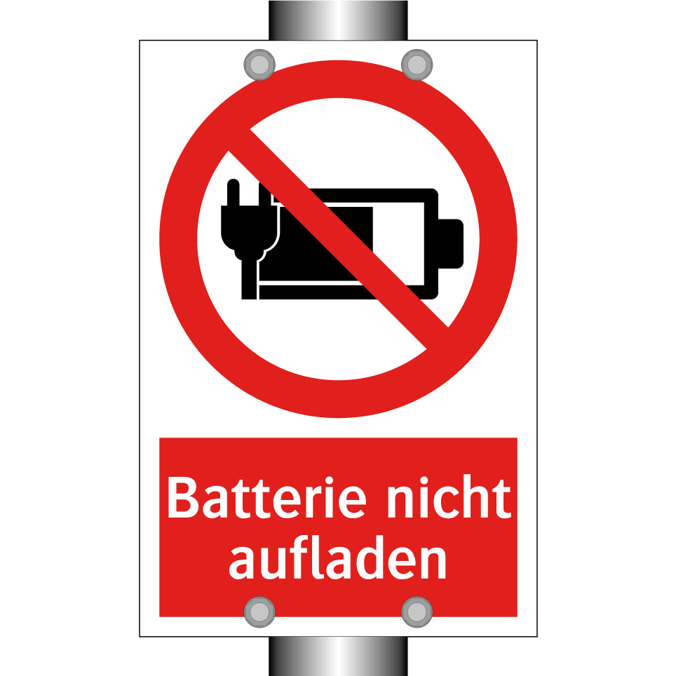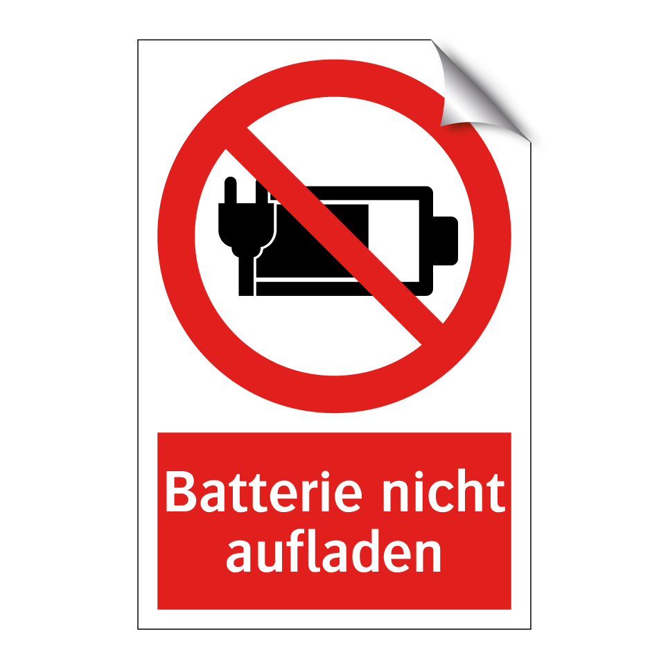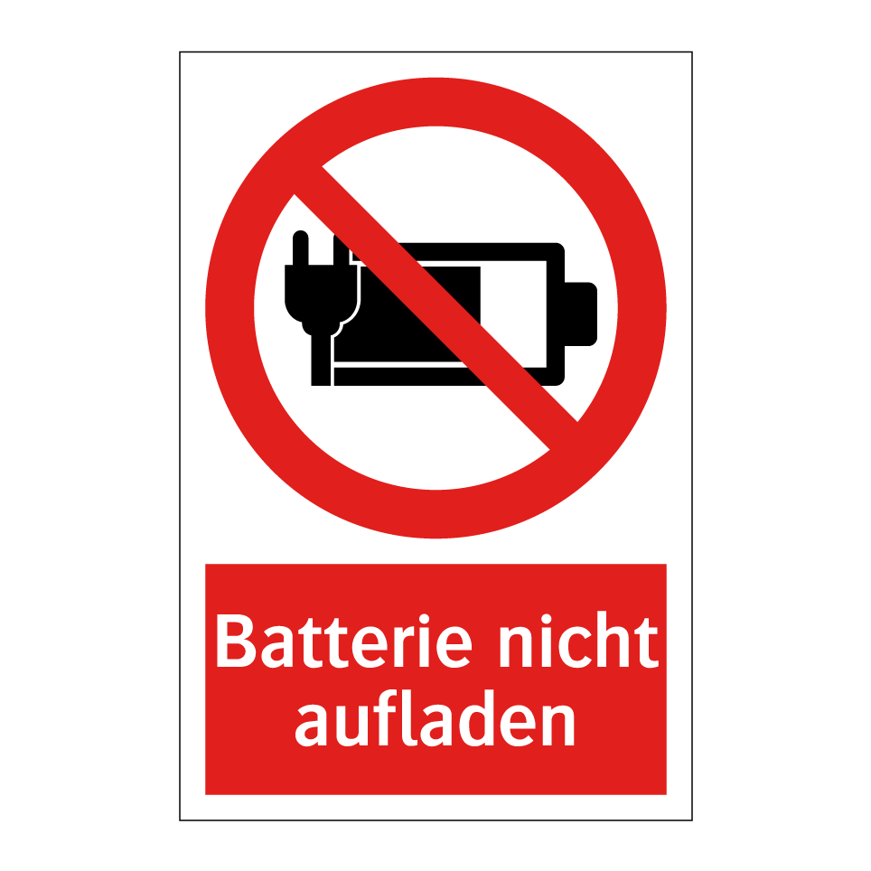 Verbotsschild mit dem Text Batterie nicht aufladen