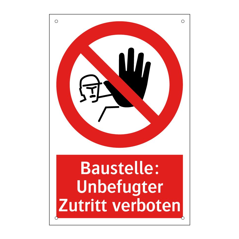 Verbotsschild mit dem Text Baustelle: Unbefugter Zutritt verboten