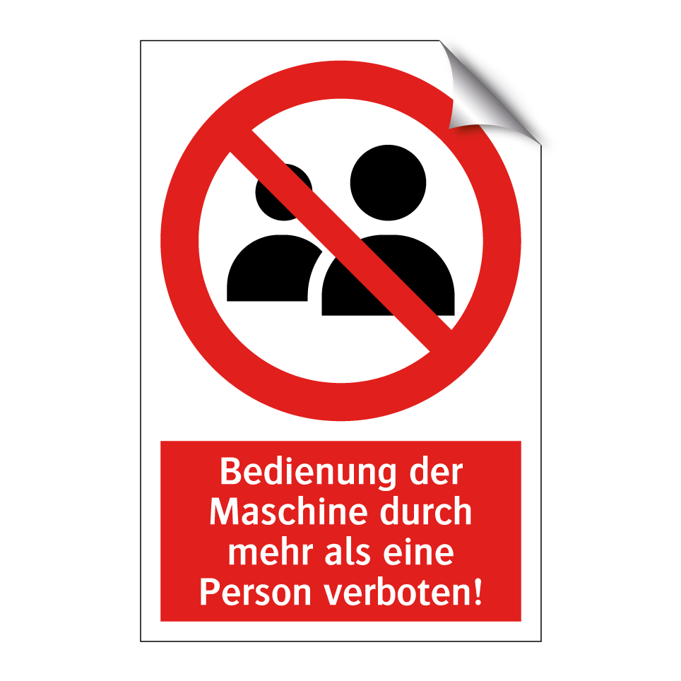 Verbotsschild mit dem Text Bedienung der Maschine durch mehr als eine Person verboten!