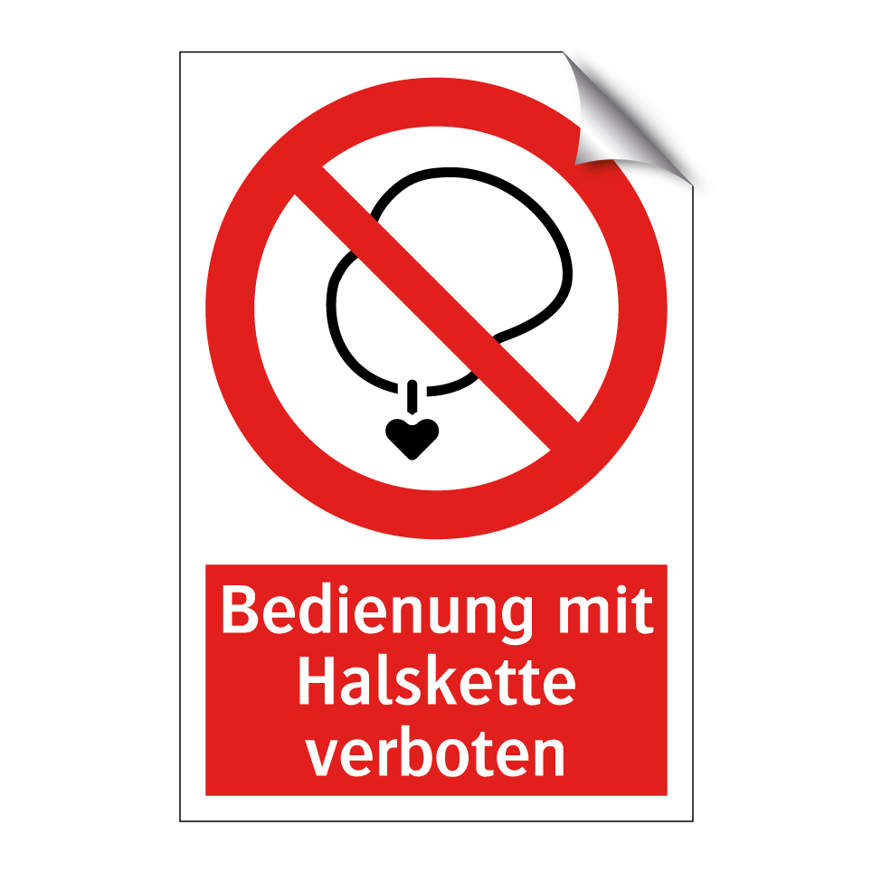 Verbotsschild mit dem Text Bedienung mit Halskette verboten