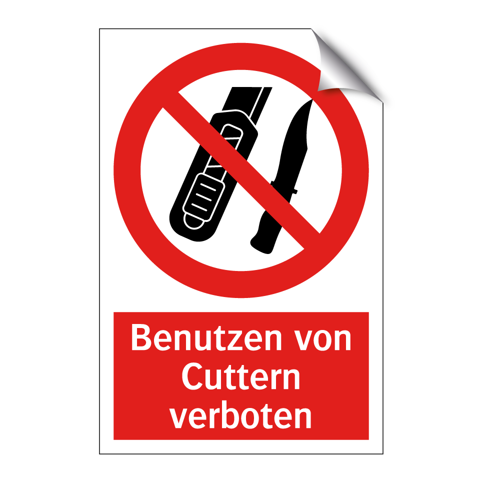 Verbotsschild mit dem Text Benutzen von Cuttern verboten
