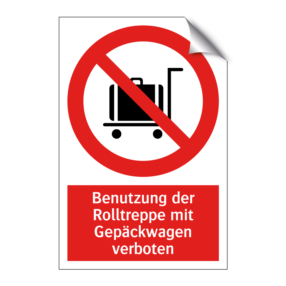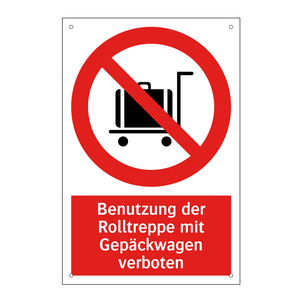Verbotsschild mit dem Text Benutzung der Rolltreppe mit Gepäckwagen verboten
