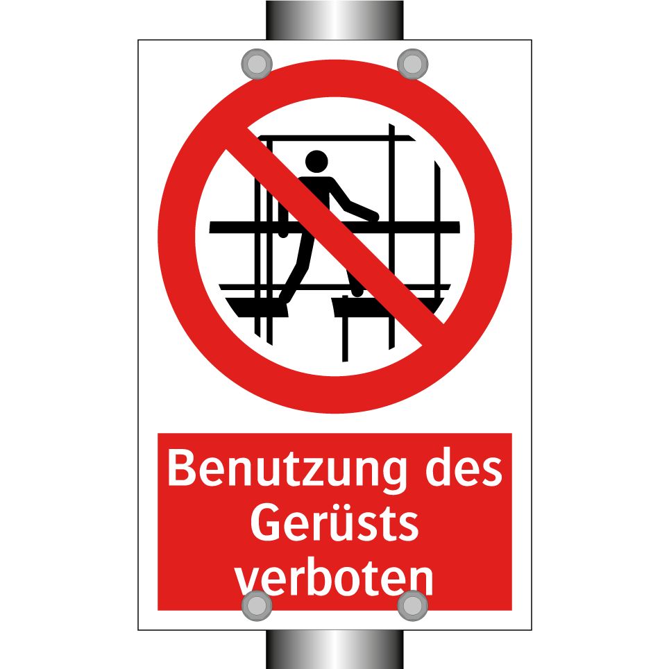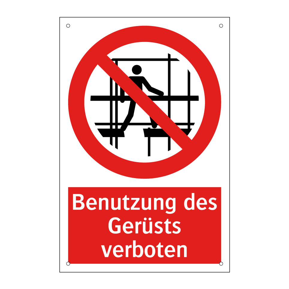 Verbotsschild mit dem Text Benutzung des Gerüsts verboten