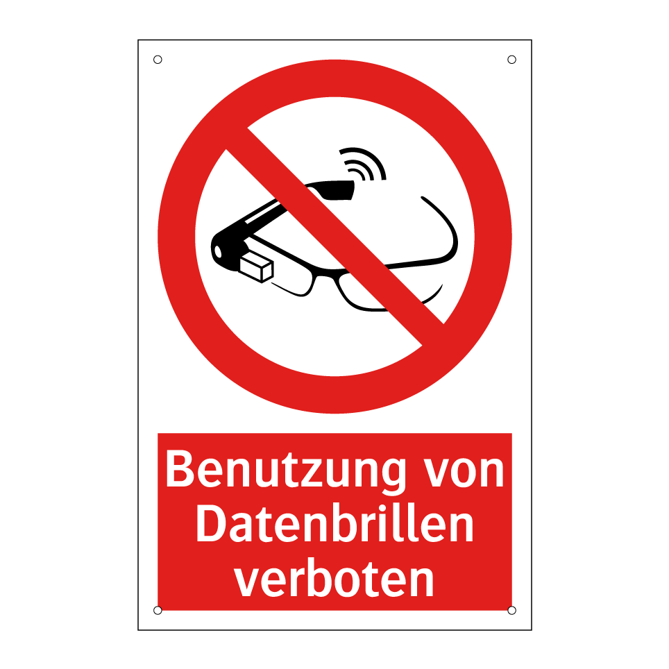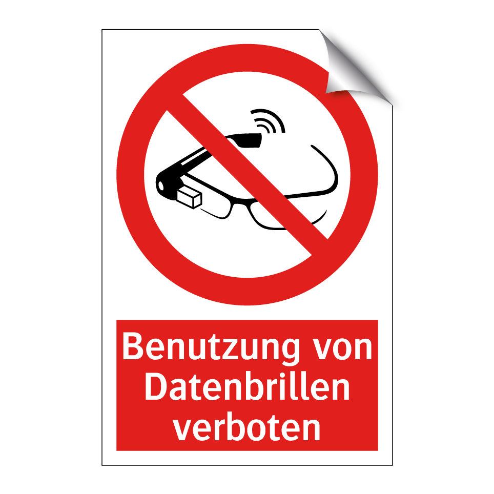 Verbotsschild mit dem Text Benutzung von Datenbrillen verboten