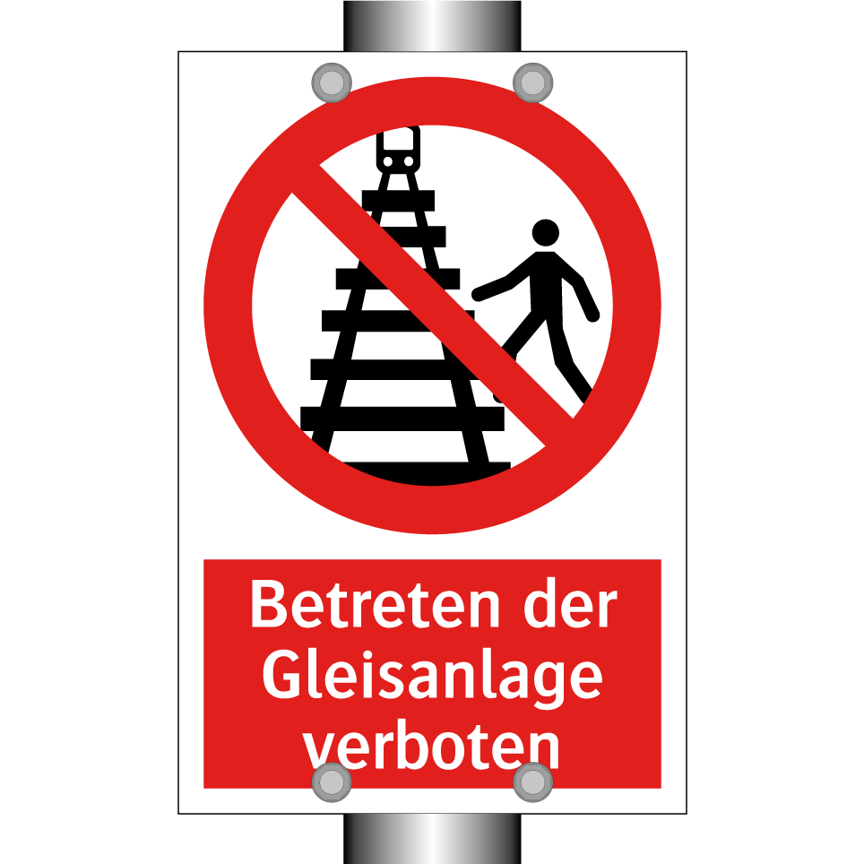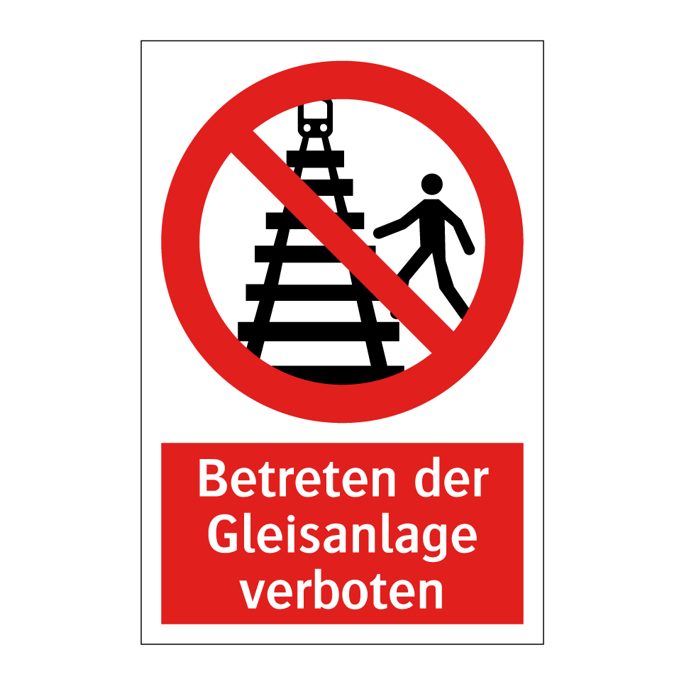 Verbotsschild mit dem Text Betreten der Gleisanlage verboten