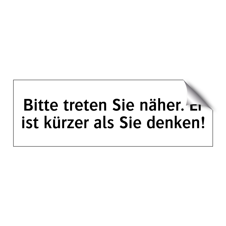 Verbotsschild mit dem Text Bitte treten Sie näher. Er ist kürzer als Sie denken!