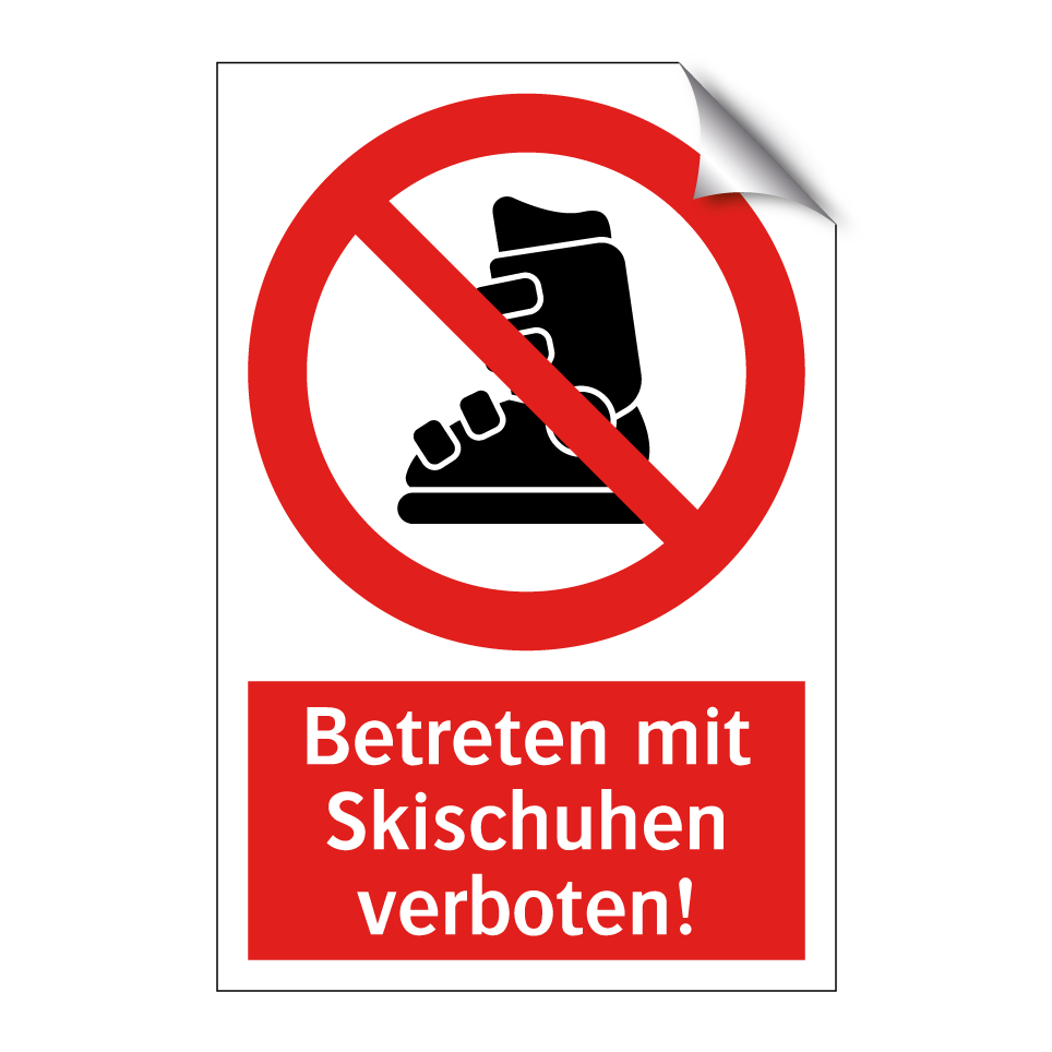 Verbotsschild mit dem Text Betreten mit Skischuhen verboten!