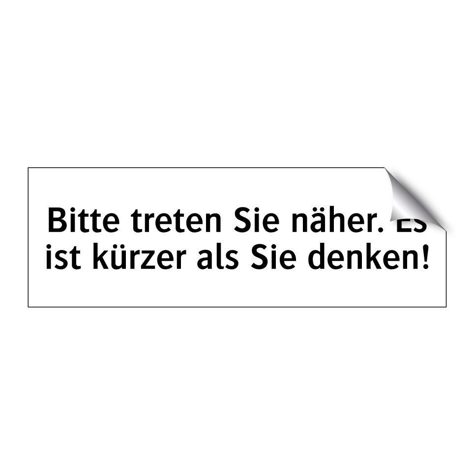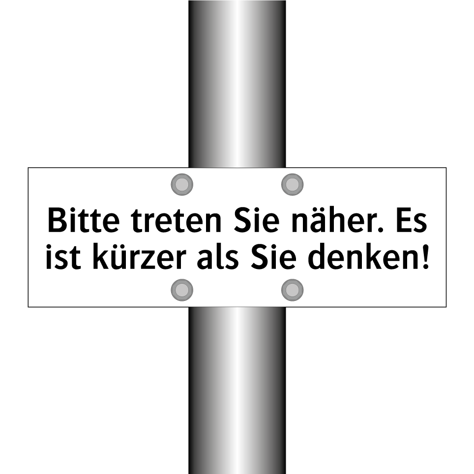 Verbotsschild mit dem Text Bitte treten Sie näher. Es ist kürzer als Sie denken!