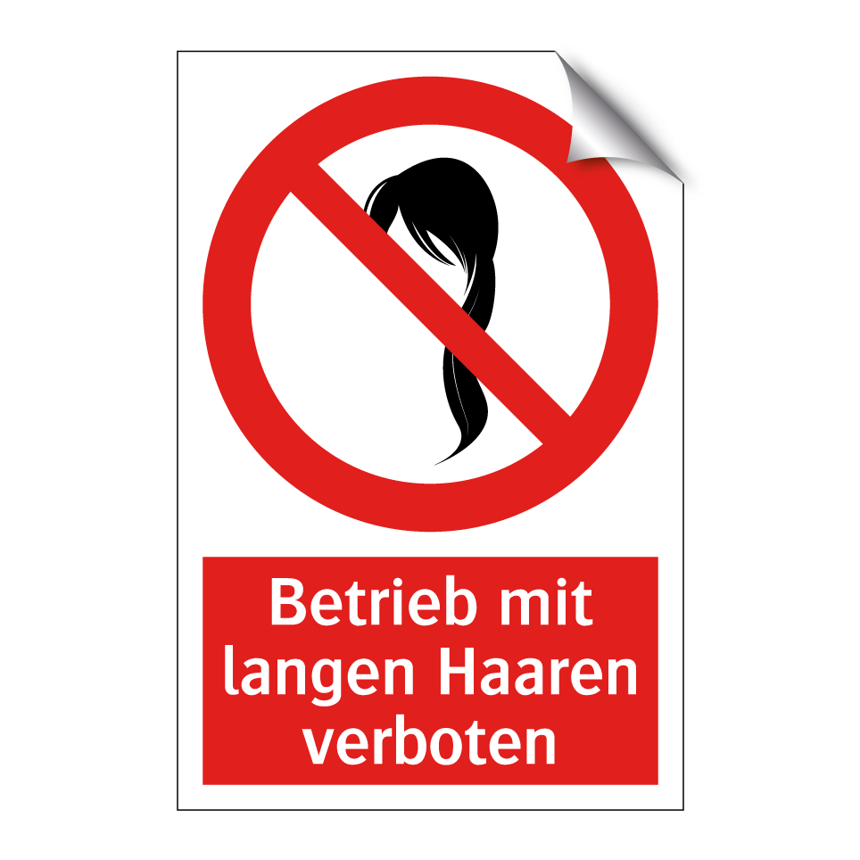 Verbotsschild mit dem Text Betrieb mit langen Haaren verboten