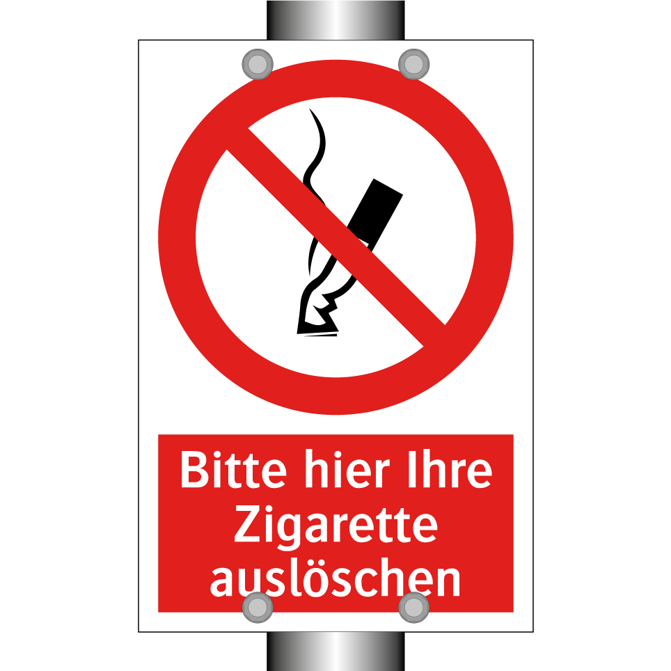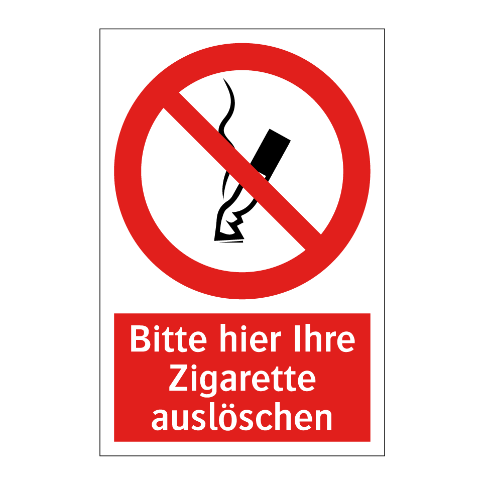 Verbotsschild mit dem Text Bitte hier Ihre Zigarette auslöschen