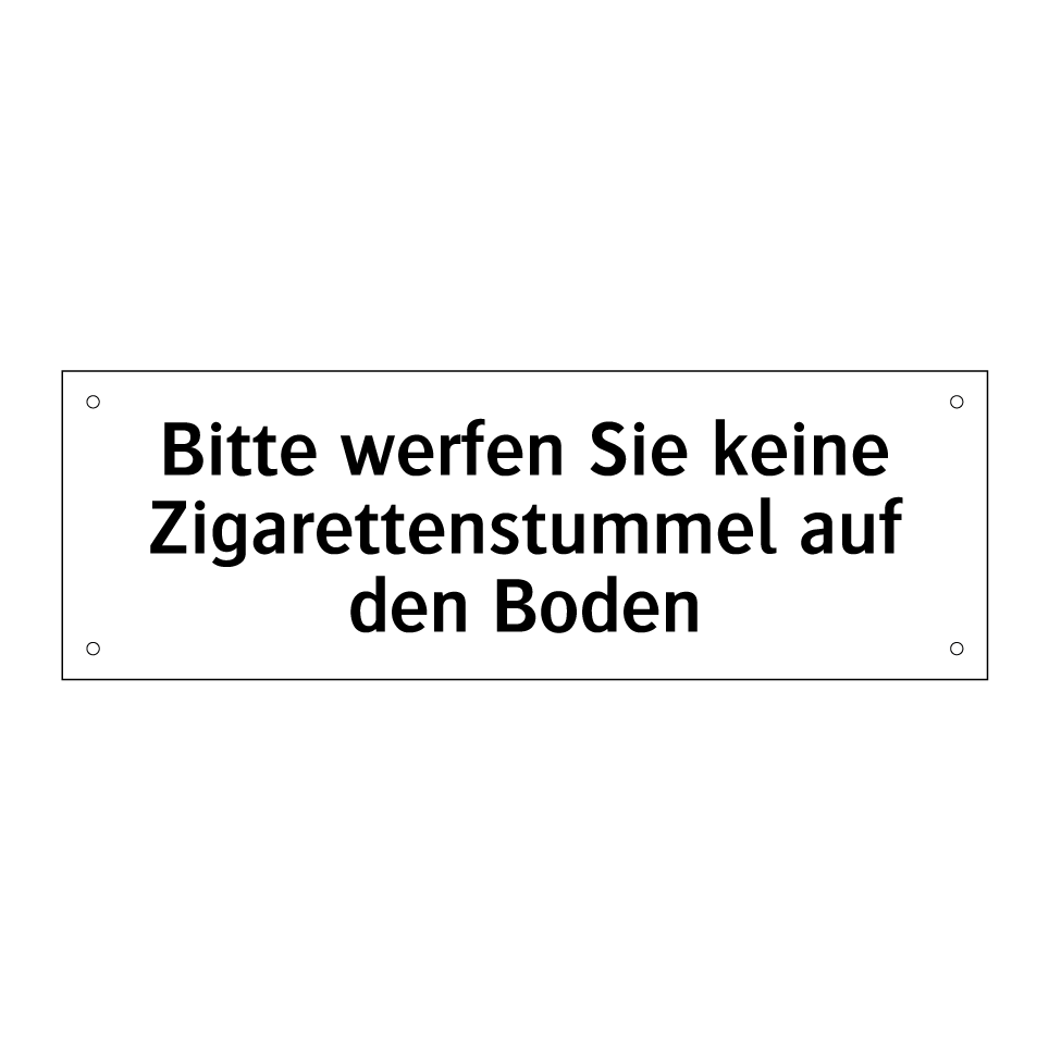 Verbotsschild mit dem Text Bitte werfen Sie keine Zigarettenstummel auf den Boden