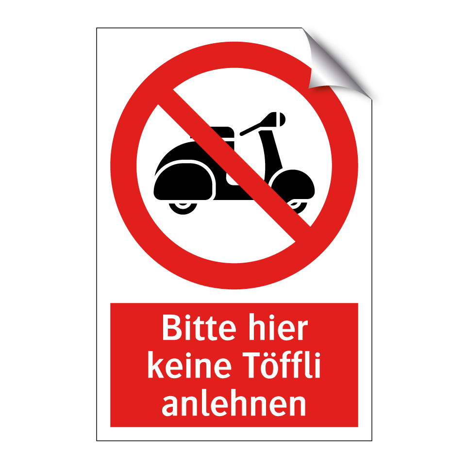 Verbotsschild mit dem Text Bitte hier keine Töffli anlehnen