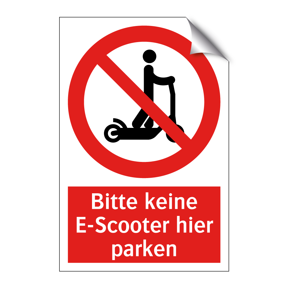 Diese auffällige Verbotsschild mit rotem Hintergrund und weißer Schrift ist ideal, um Bereiche zu kennzeichnen, in denen das Abstellen von E-Scootern unerwünscht ist. Die klare Symbolik sorgt dafür, dass die Botschaft unmissverständlich ist und sofort ins Auge fällt. Perfekt geeignet für Eingangsbereiche von Geschäften, Wohnanlagen oder öffentlichen Plätzen, wo der Platz begrenzt ist und Ordnung gewahrt werden muss. Durch die deutliche Darstellung wird sichergestellt, dass Passanten die Regelung respektieren. Diese Verbotsschilder tragen dazu bei, unerwünschtes Parken zu verhindern und den Verkehrsfluss in stark frequentierten Bereichen zu verbessern.