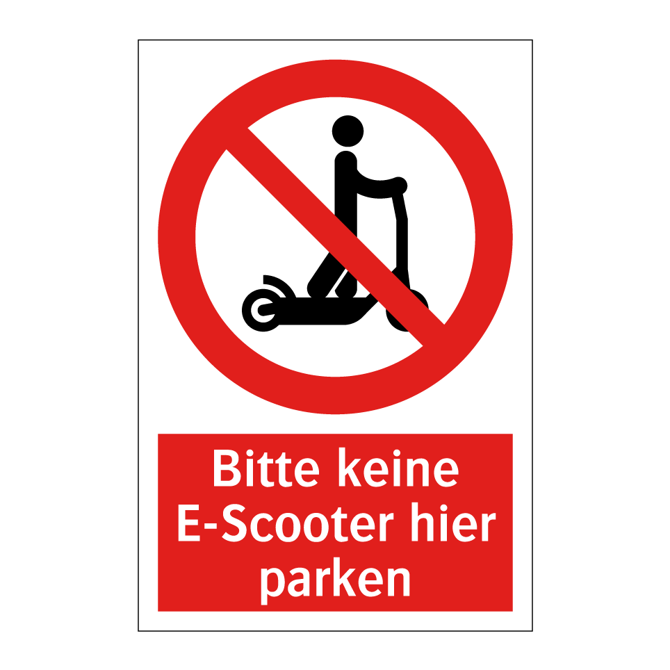 Verbotsschild mit dem Text Bitte keine E-Scooter hier parken