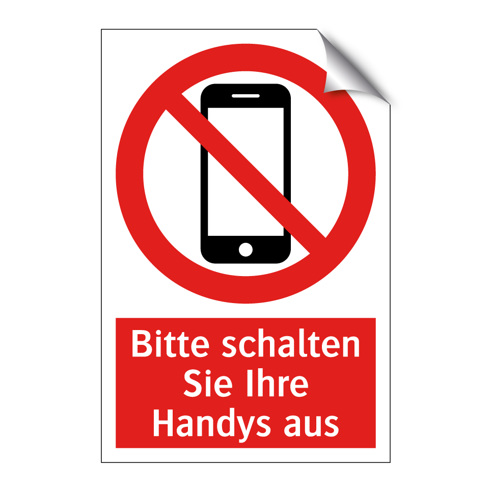 Verbotsschild mit dem Text Bitte schalten Sie Ihre Handys aus