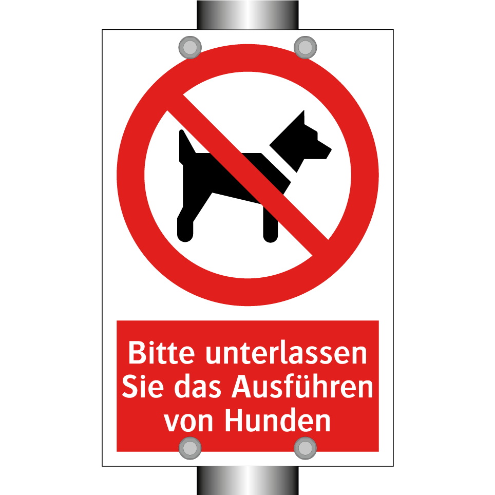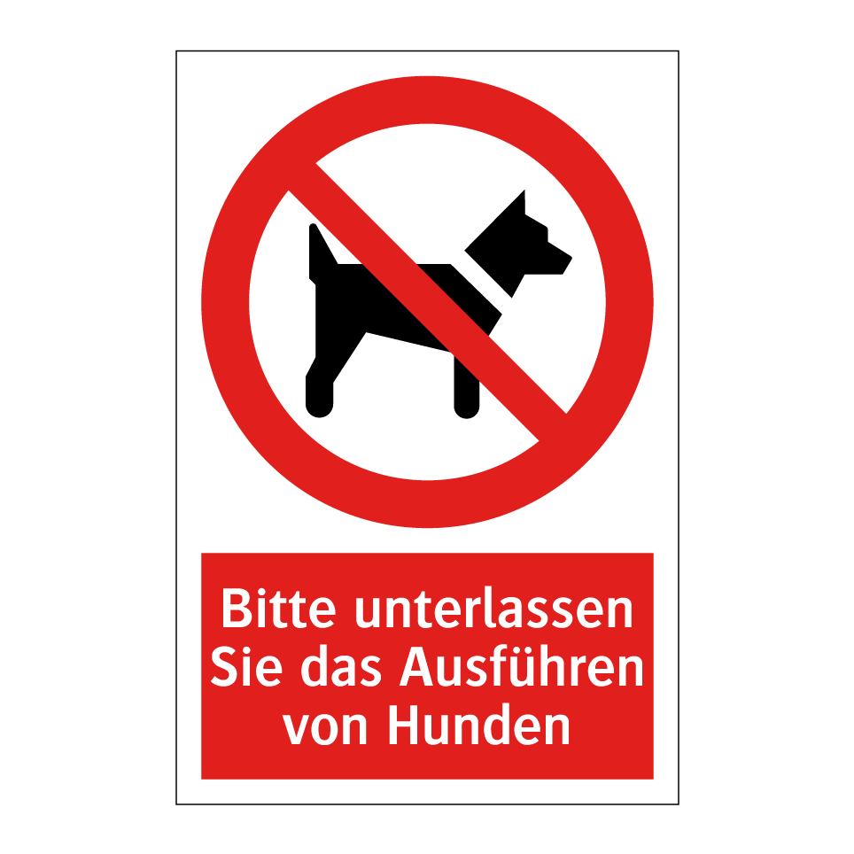 Verbotsschild mit dem Text Bitte unterlassen Sie das Ausführen von Hunden