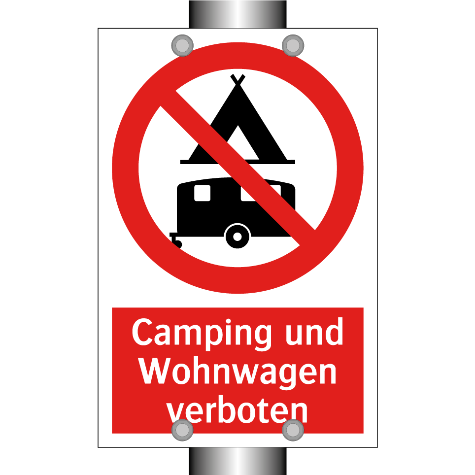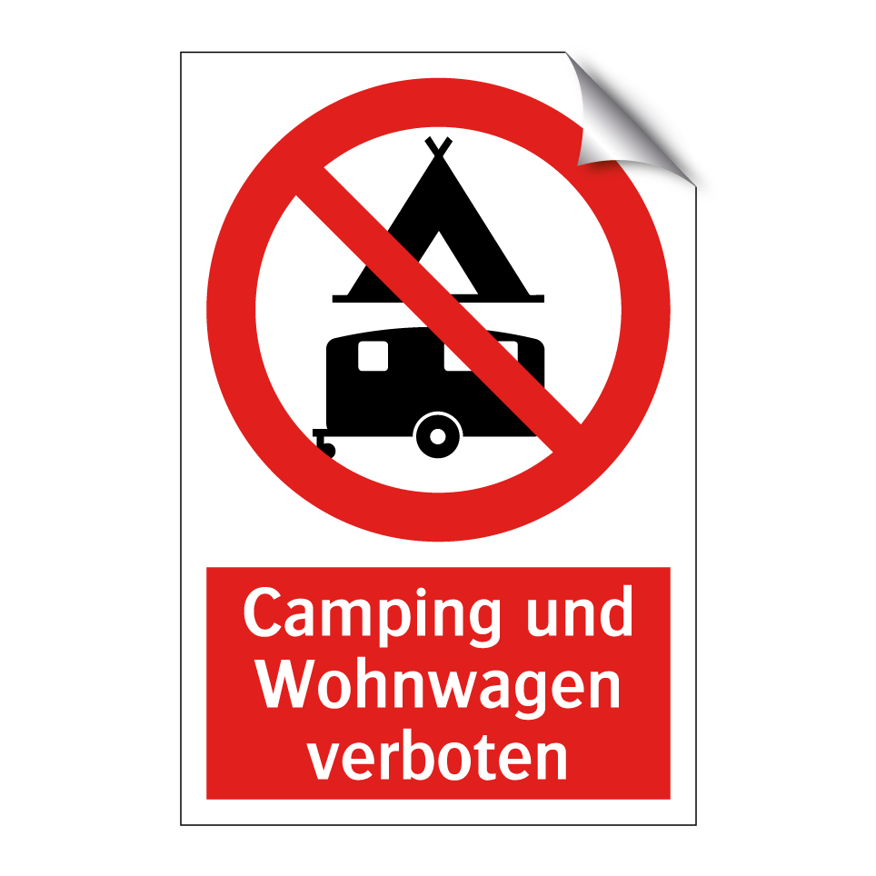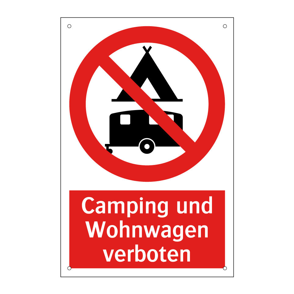 Verbotsschild mit dem Text Camping und Wohnwagen verboten