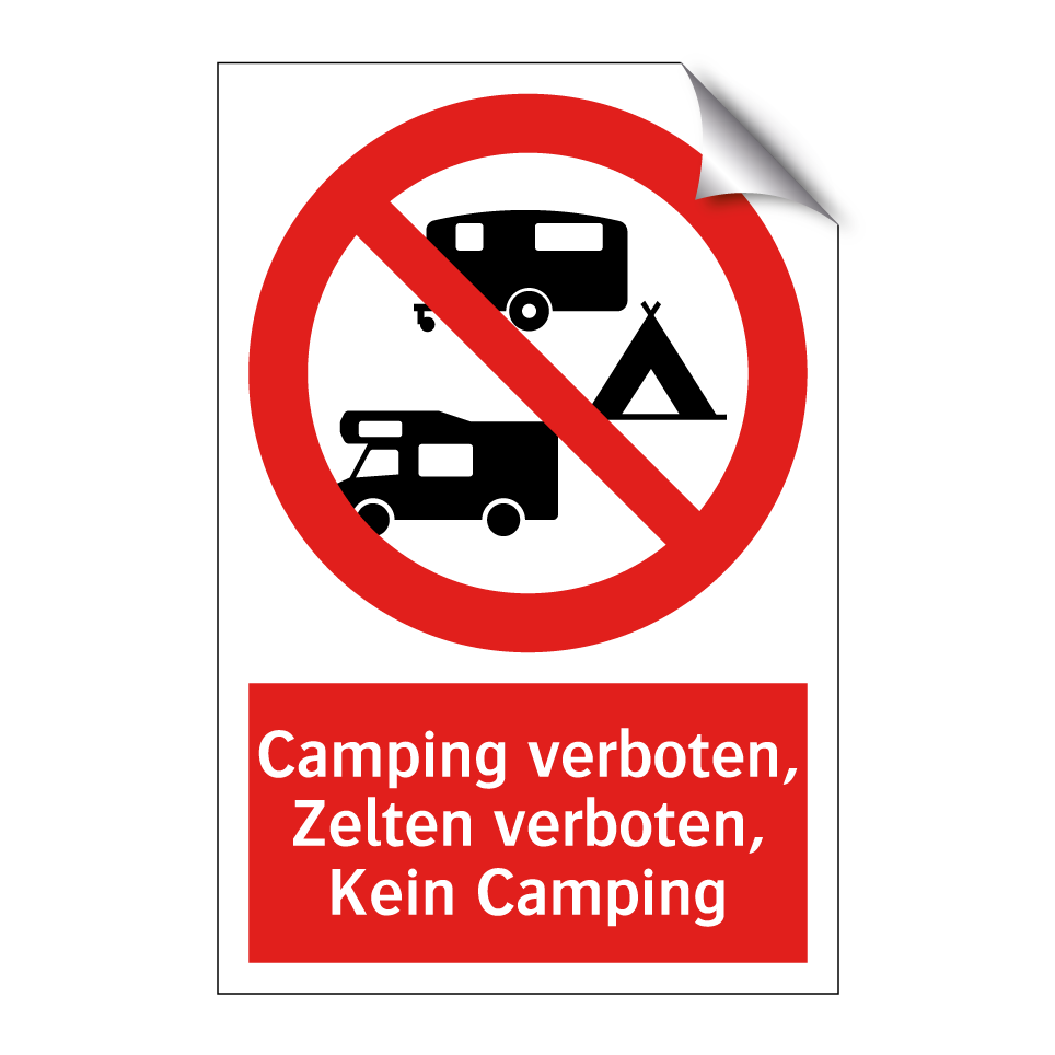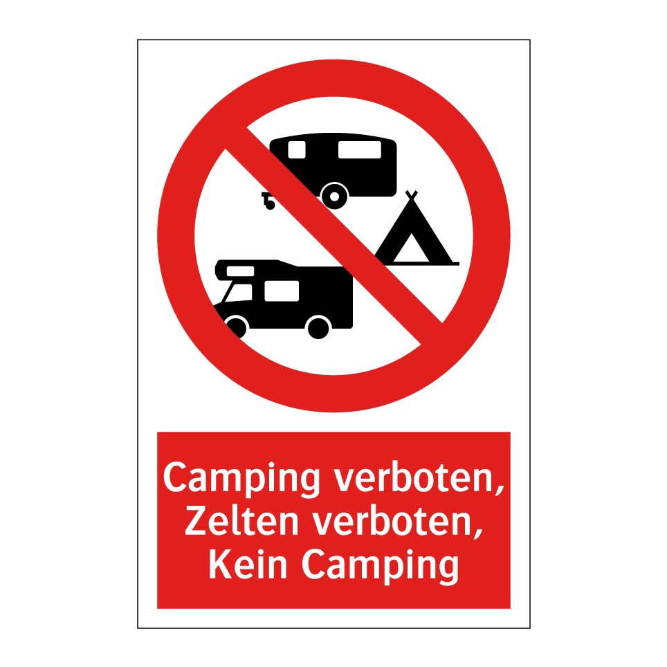 Verbotsschild mit dem Text Camping verboten, Zelten verboten, Kein Camping