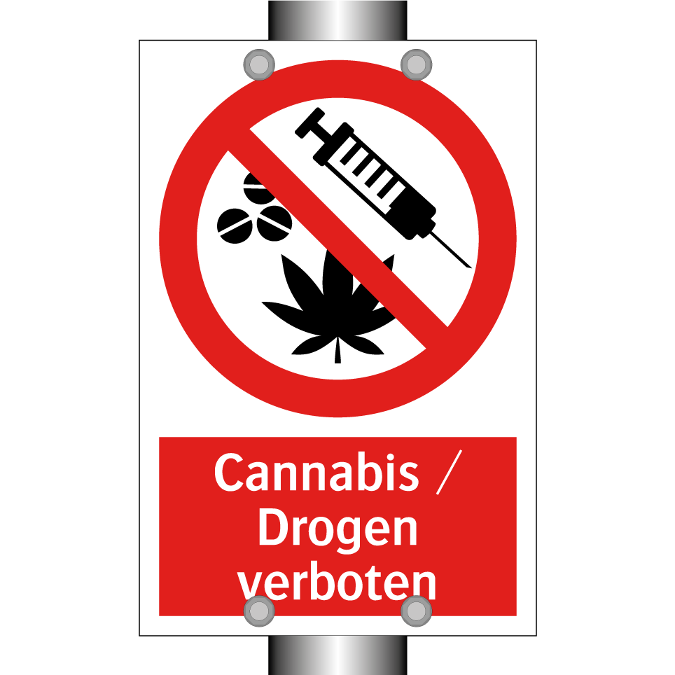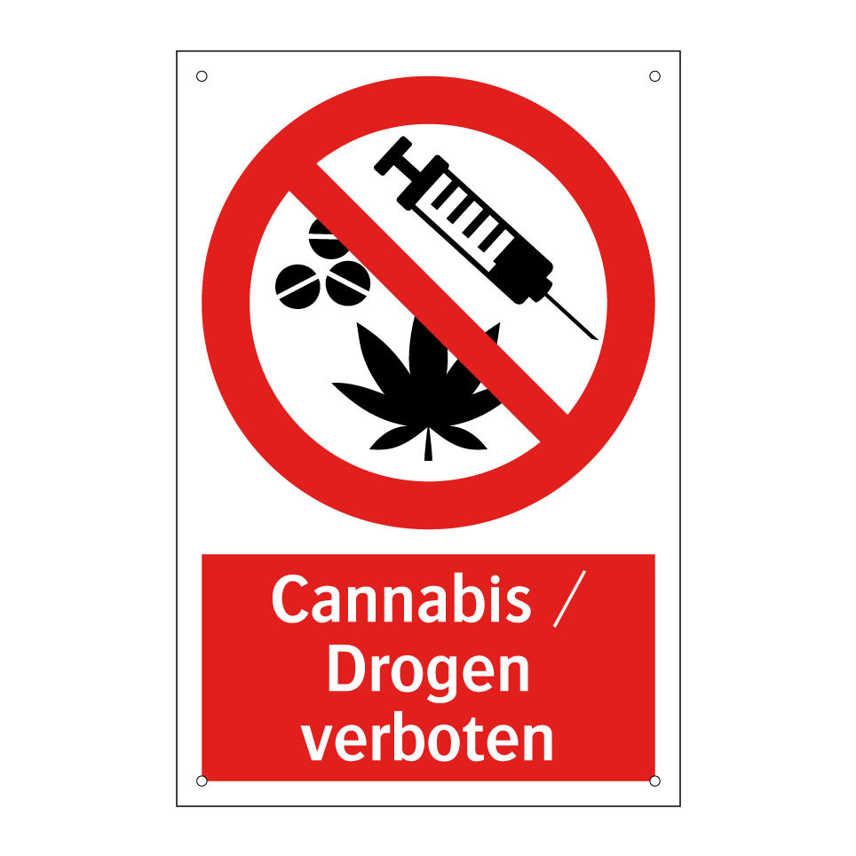 Verbotsschild mit dem Text Cannabis / Drogen verboten