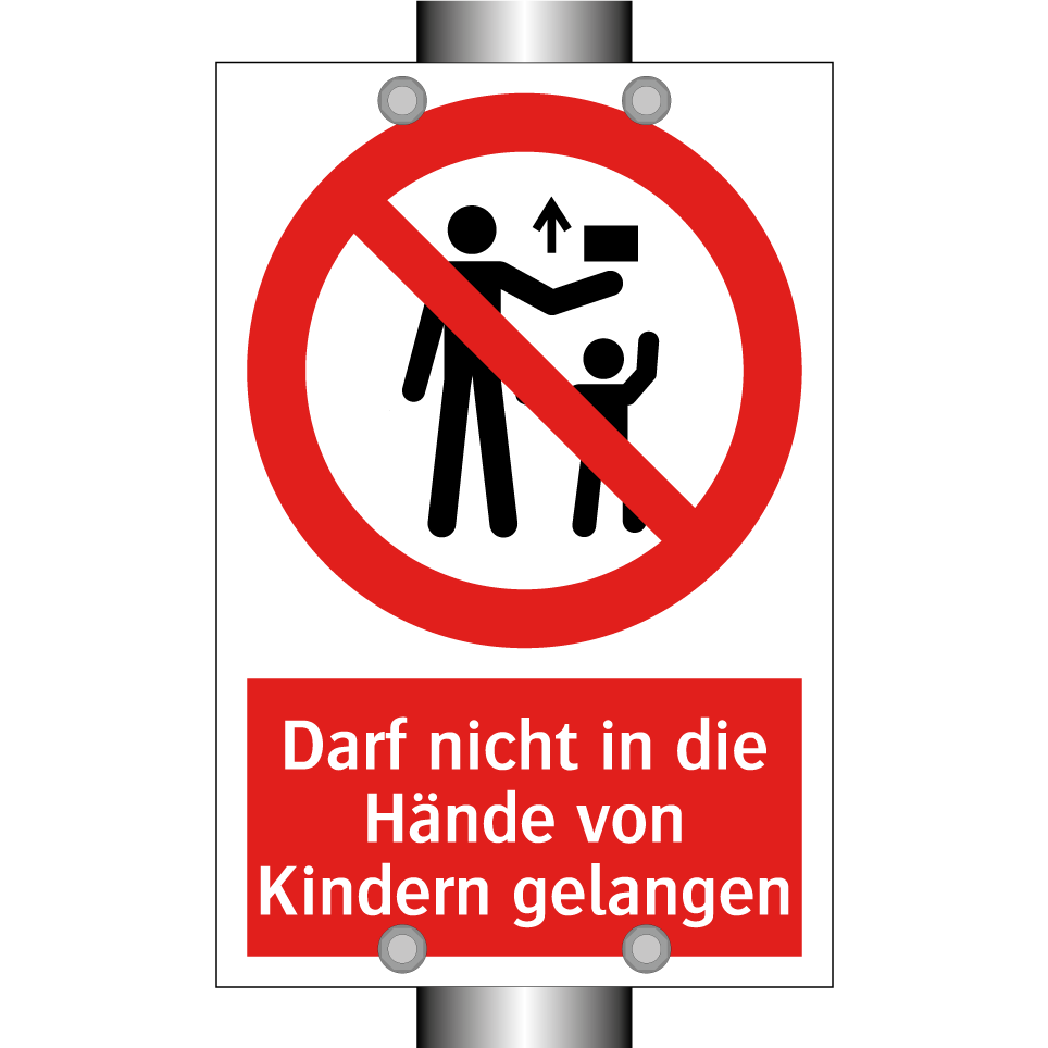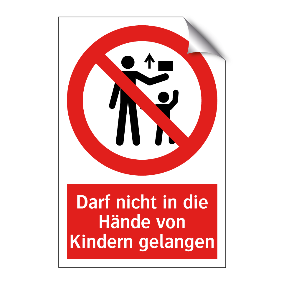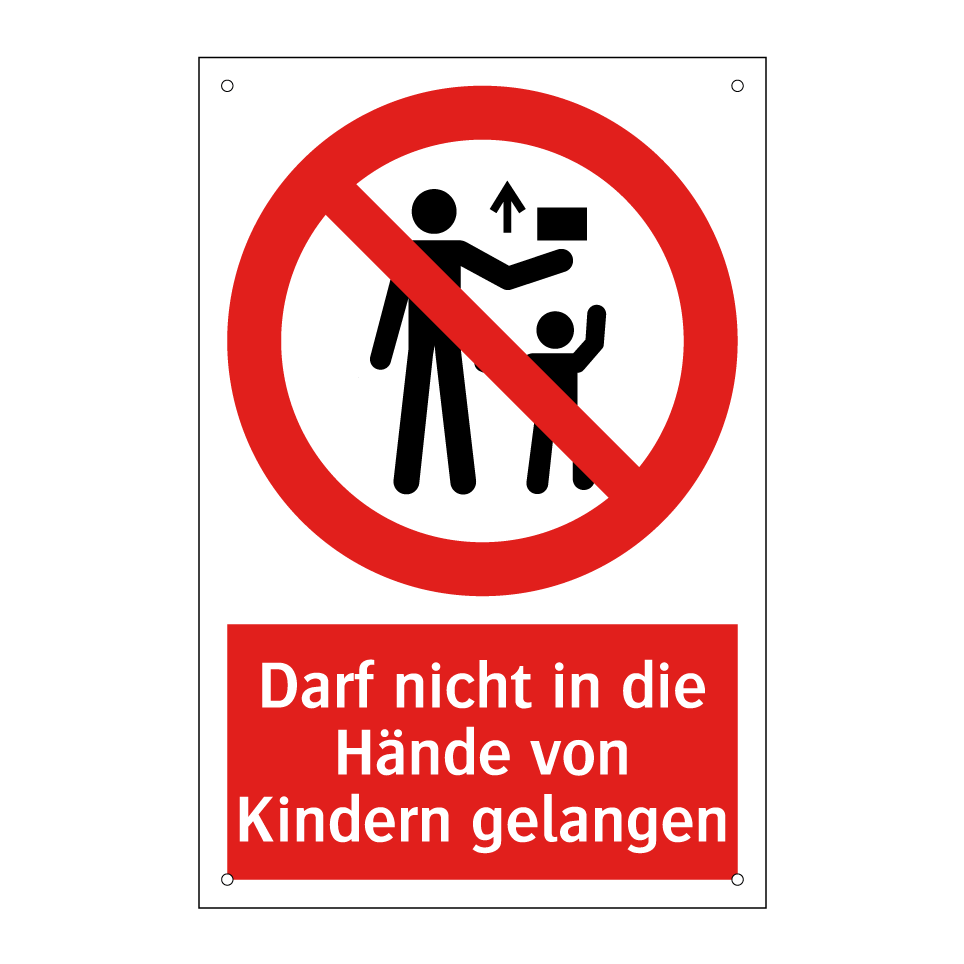 Verbotsschild mit dem Text Darf nicht in die Hände von Kindern gelangen